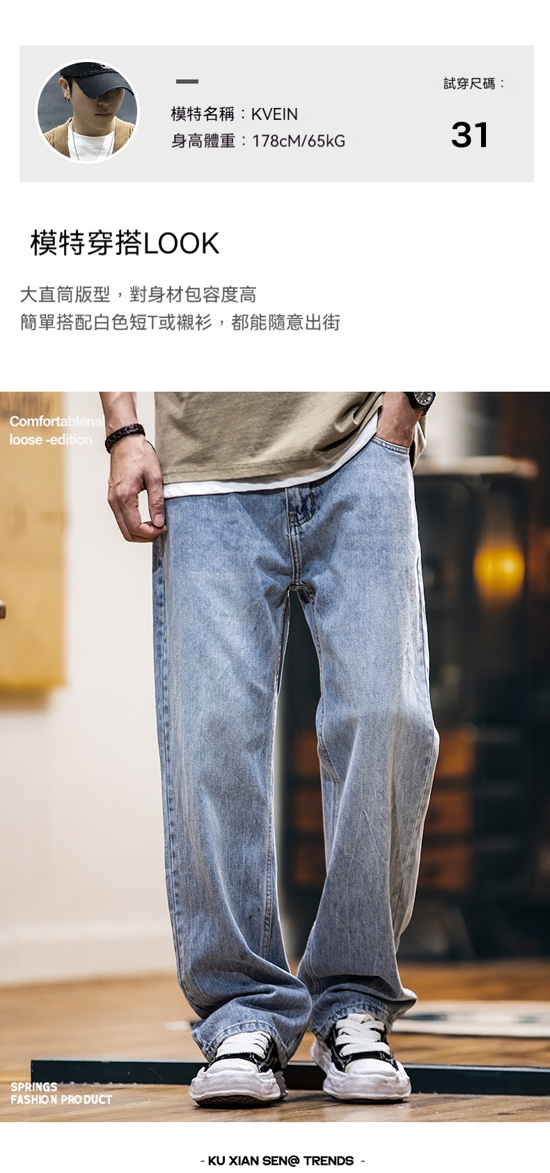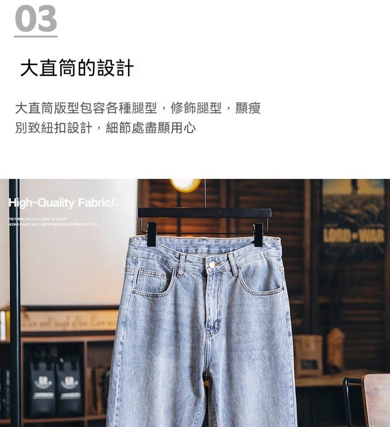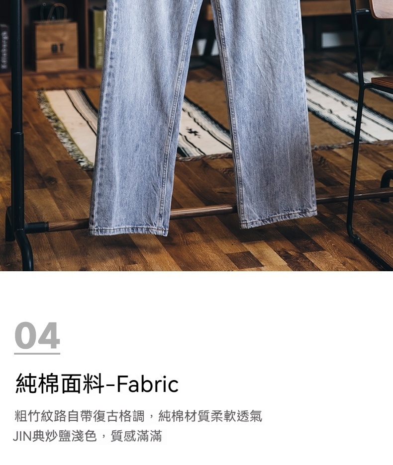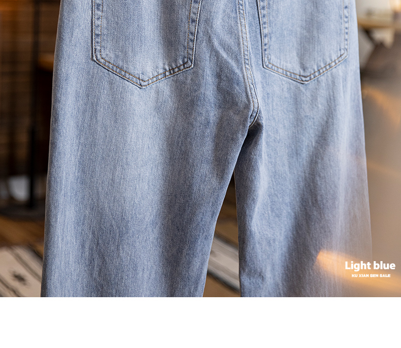 美式淺藍色復古牛仔褲男士春夏2025新款純棉水洗寬鬆直筒褲子男