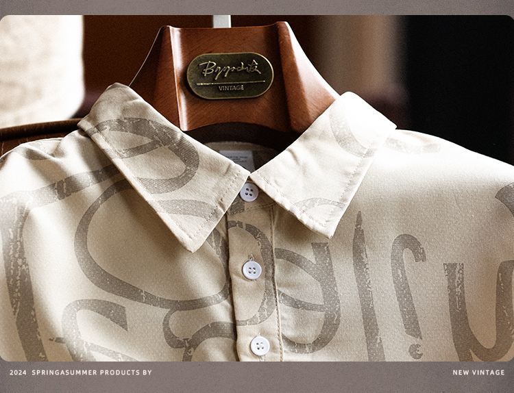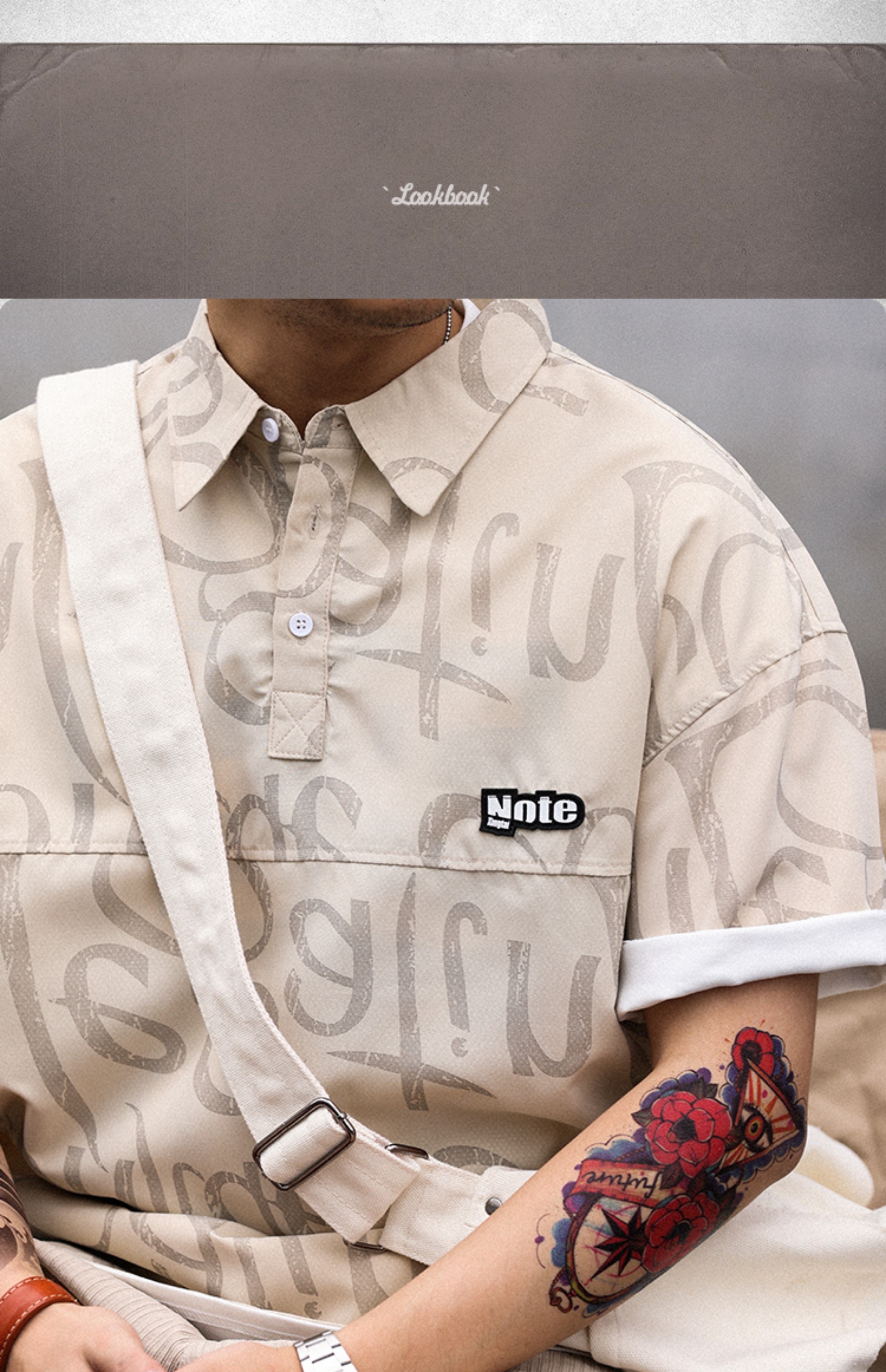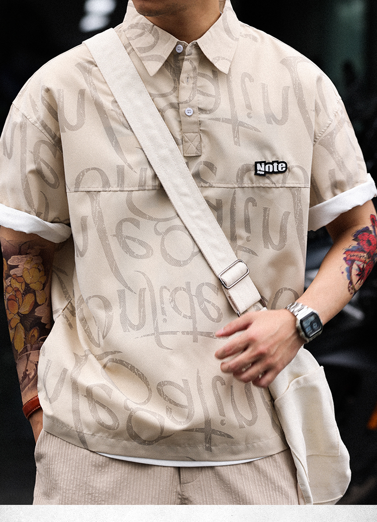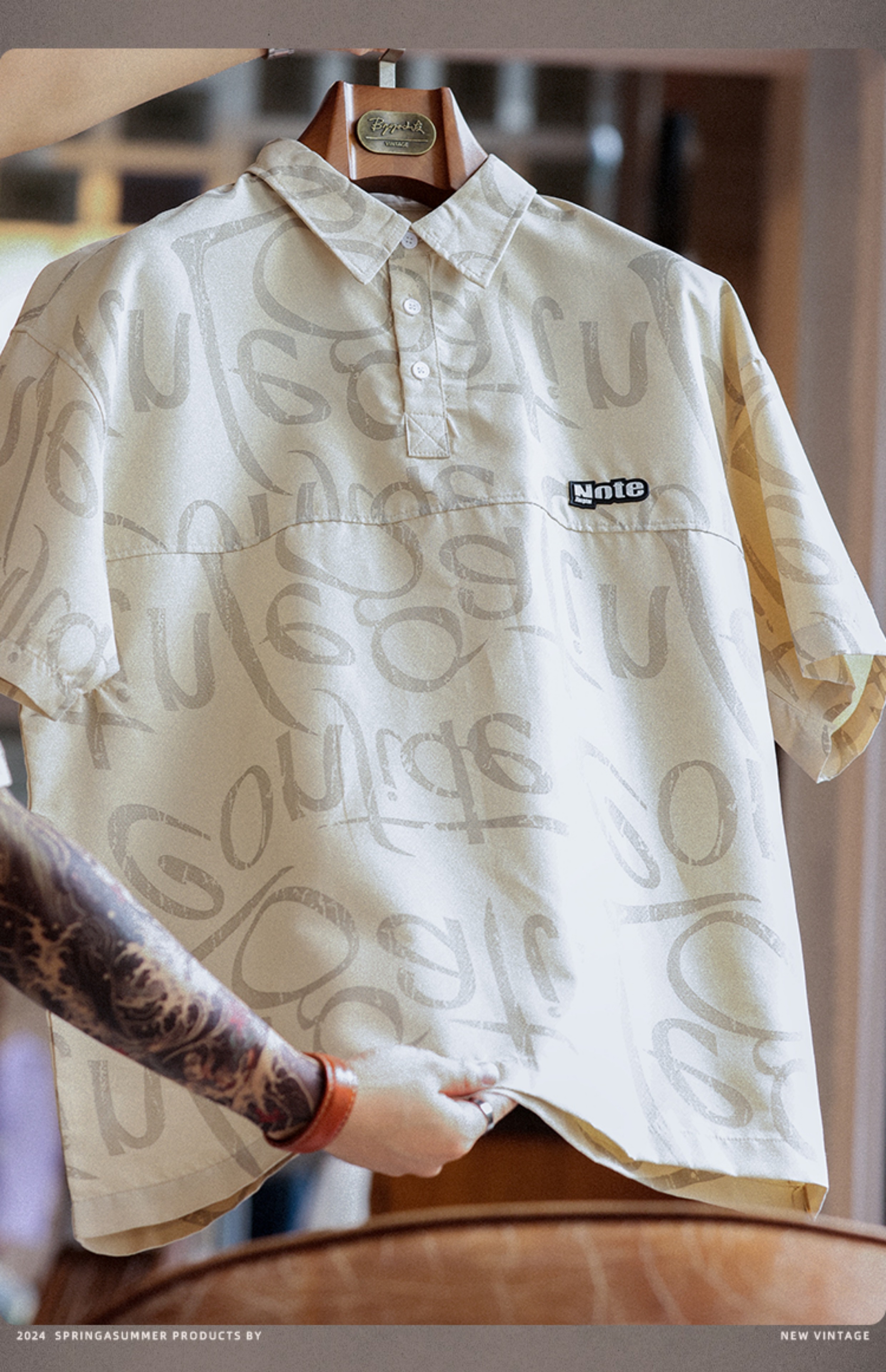 美式滿印塗鴉冰絲短袖POLO衫男薄款寬鬆工裝半袖保羅衫T恤夏