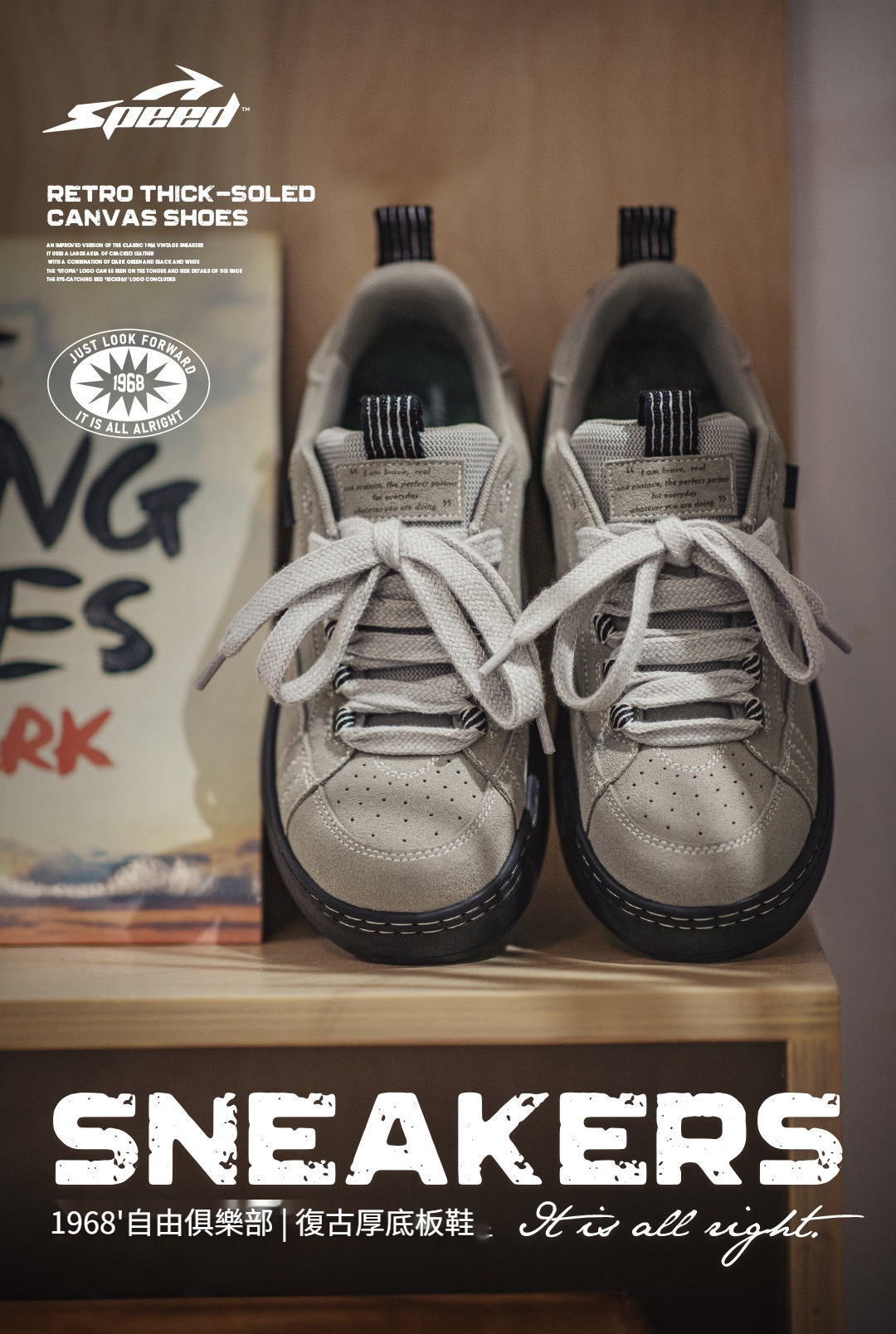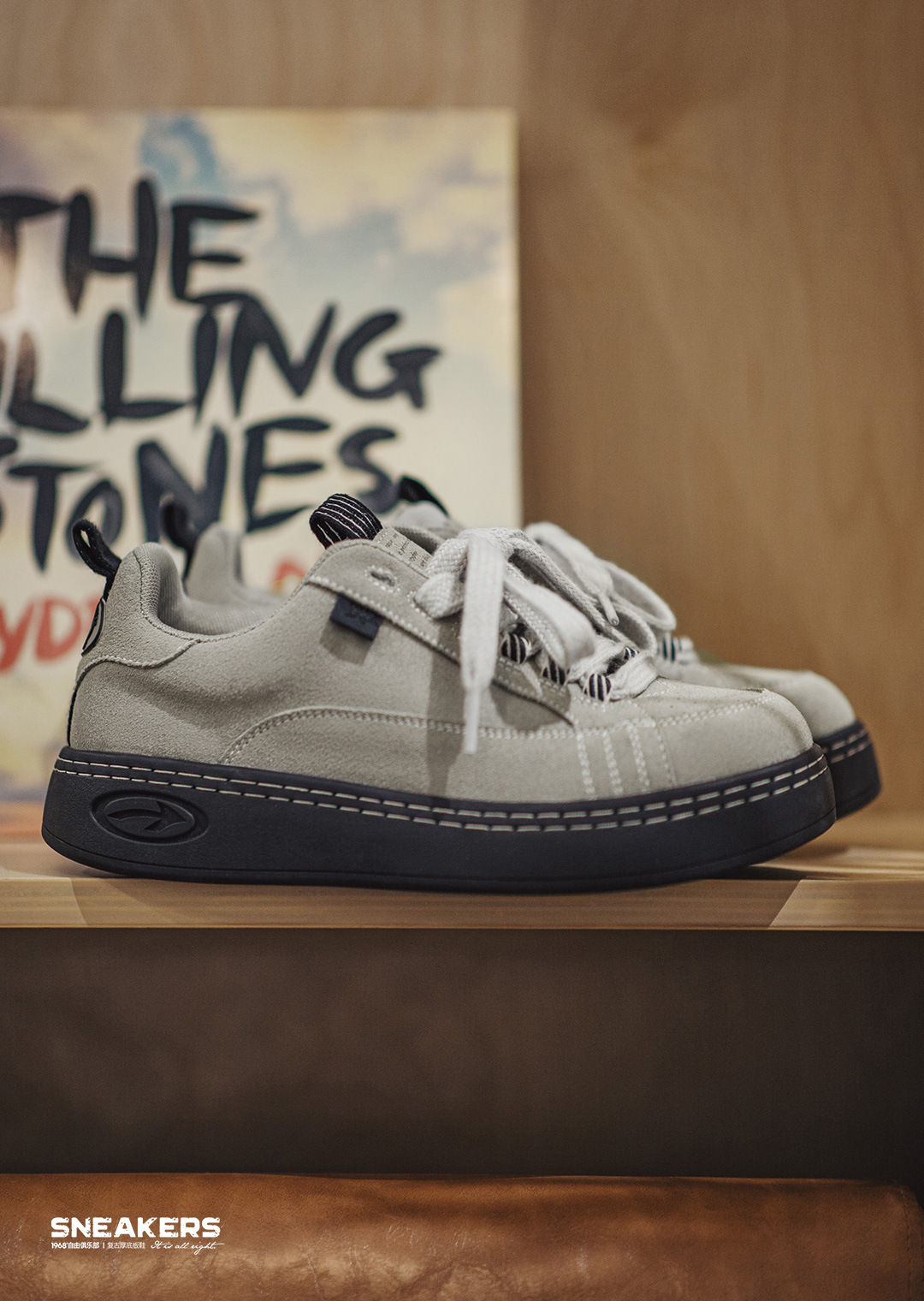 美式灰色復古厚底板鞋小眾增高翻毛皮休閒鞋低幫滑板鞋男士