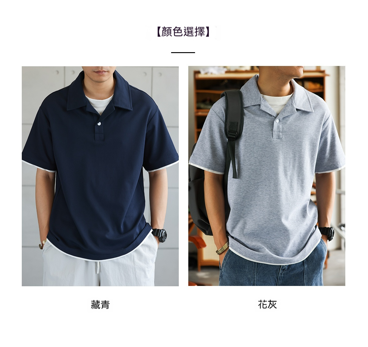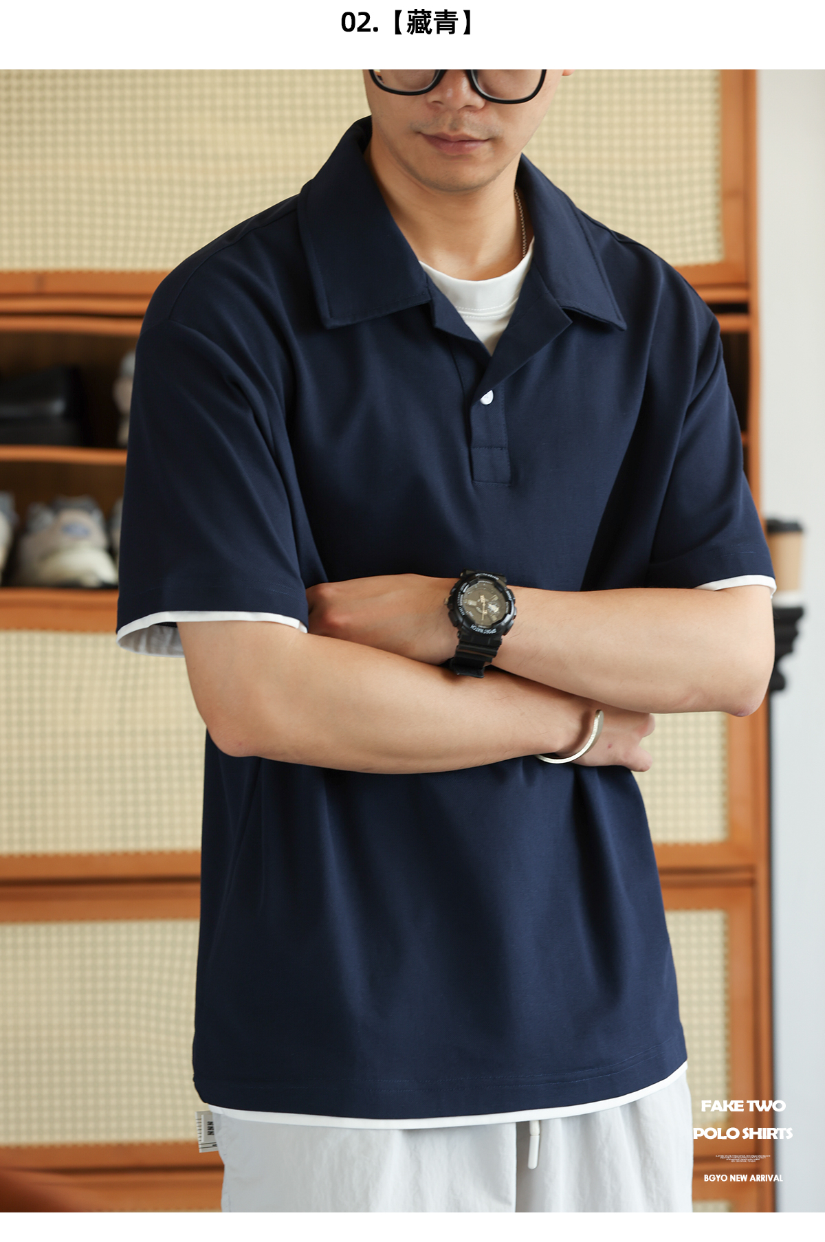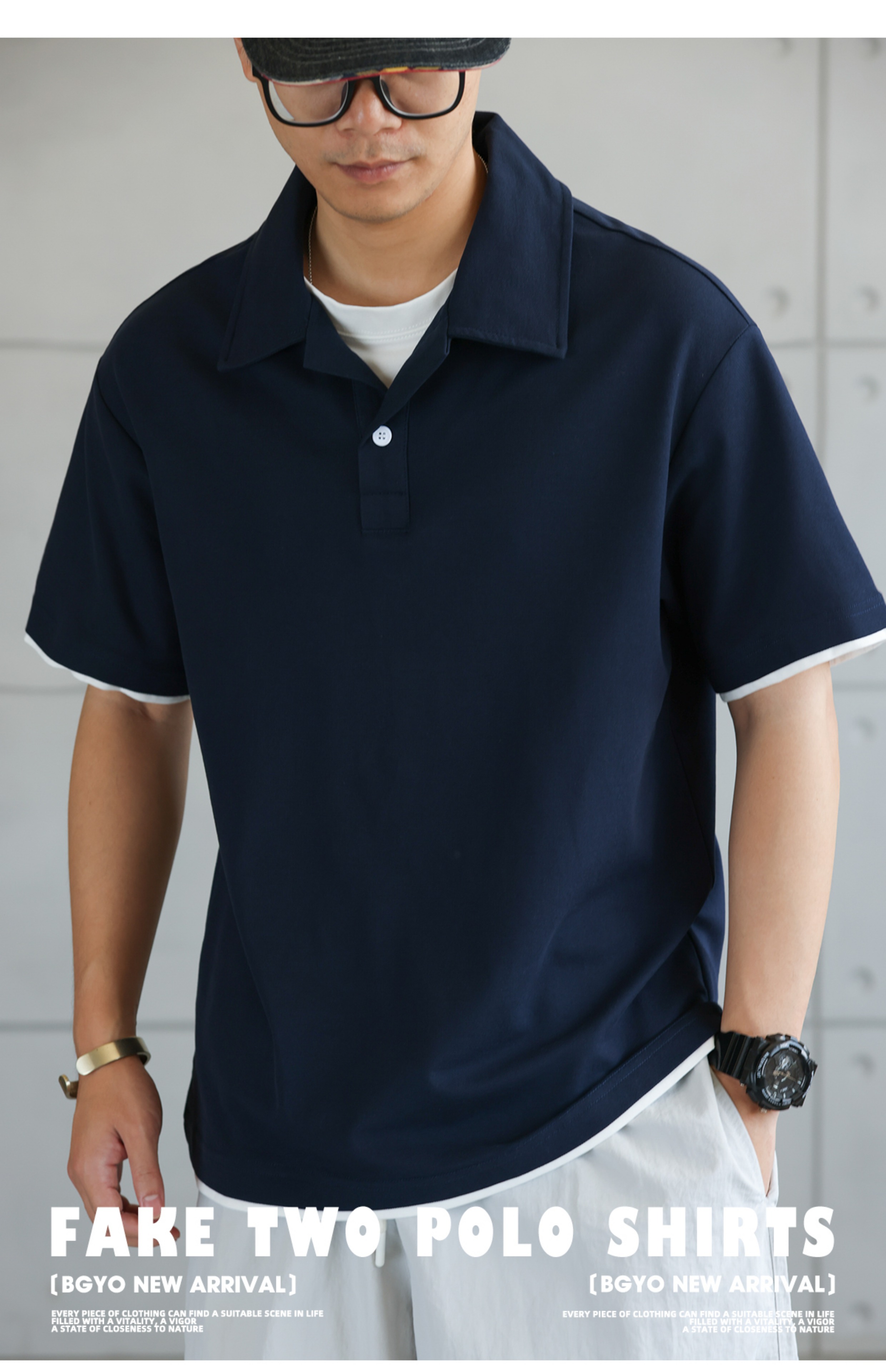 美式珠地假兩件古巴領POLO衫男通勤休閒薄款翻領短袖T恤