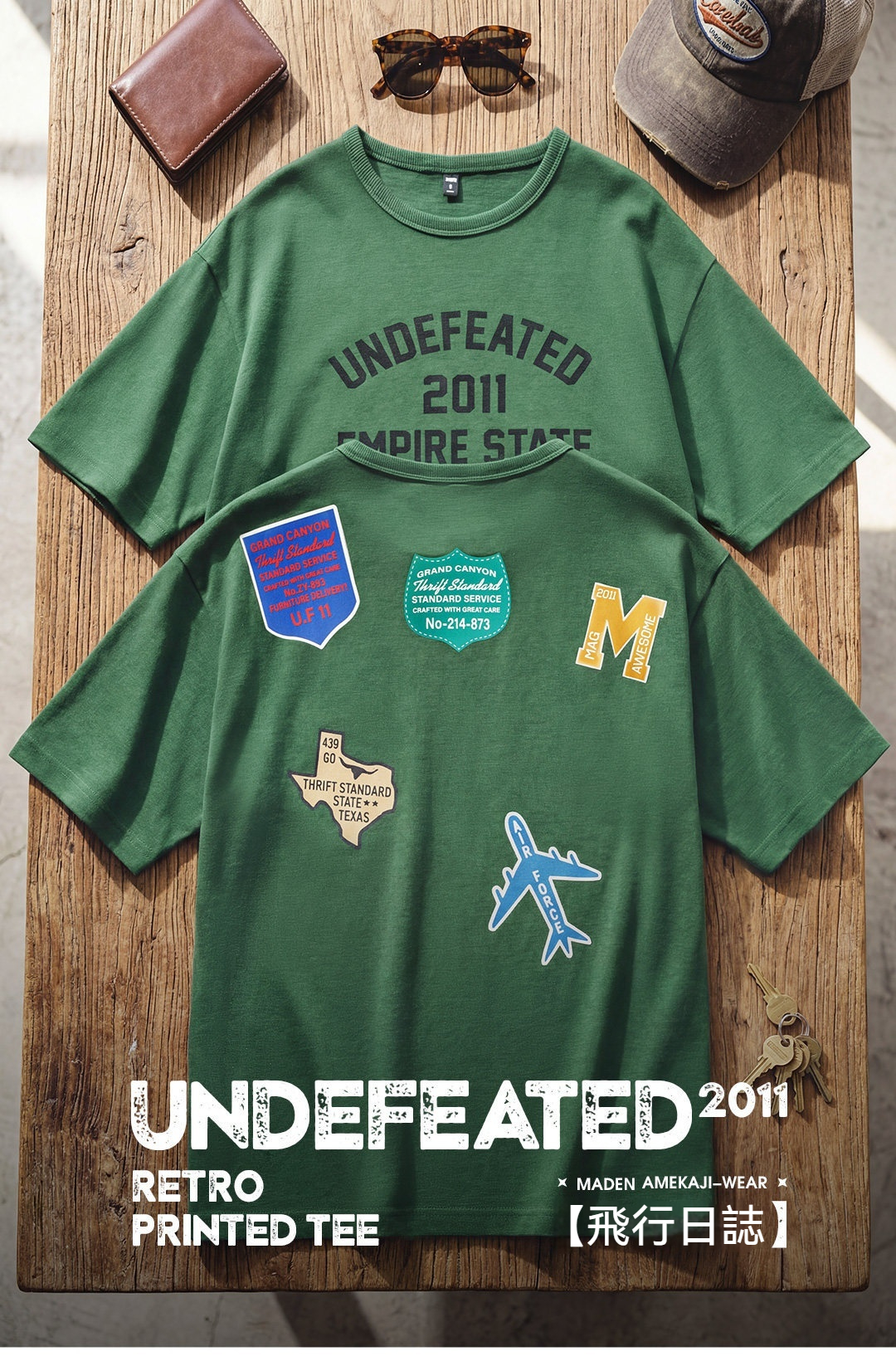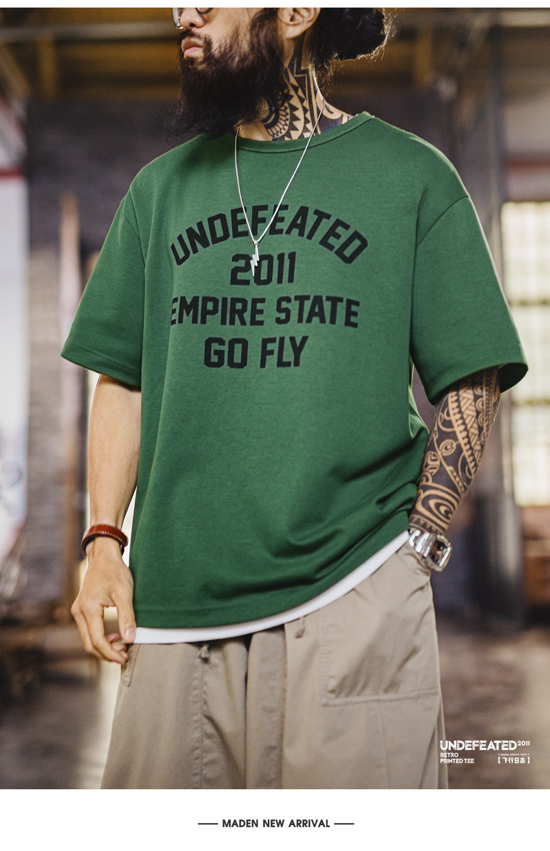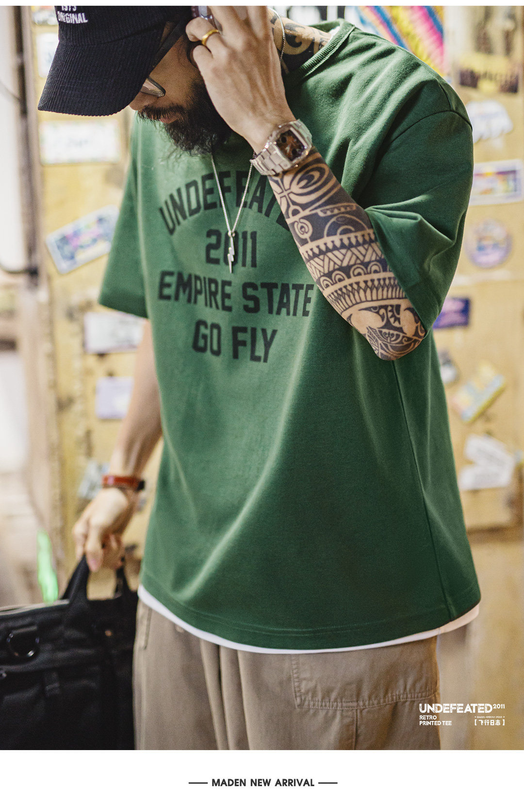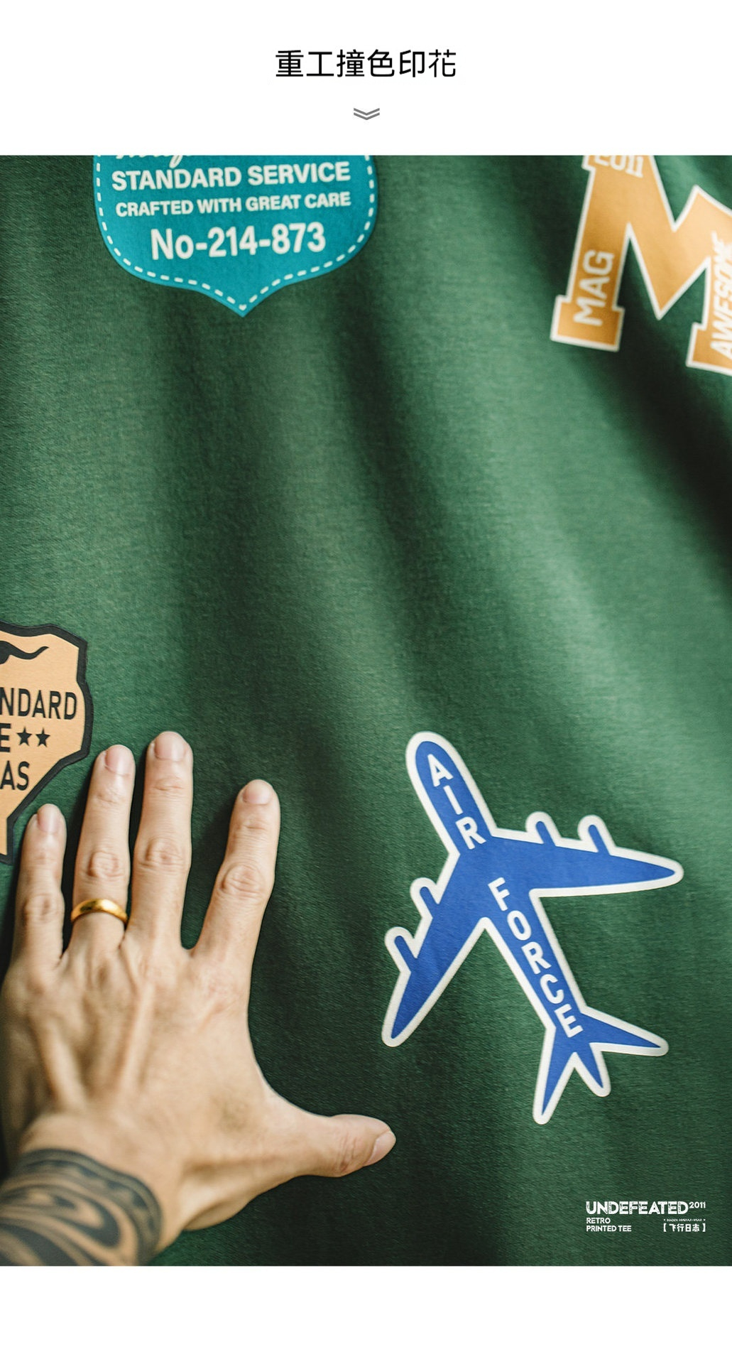 美式章仔印花T恤綠色小眾圓領正肩設計感短袖上衣男款夏