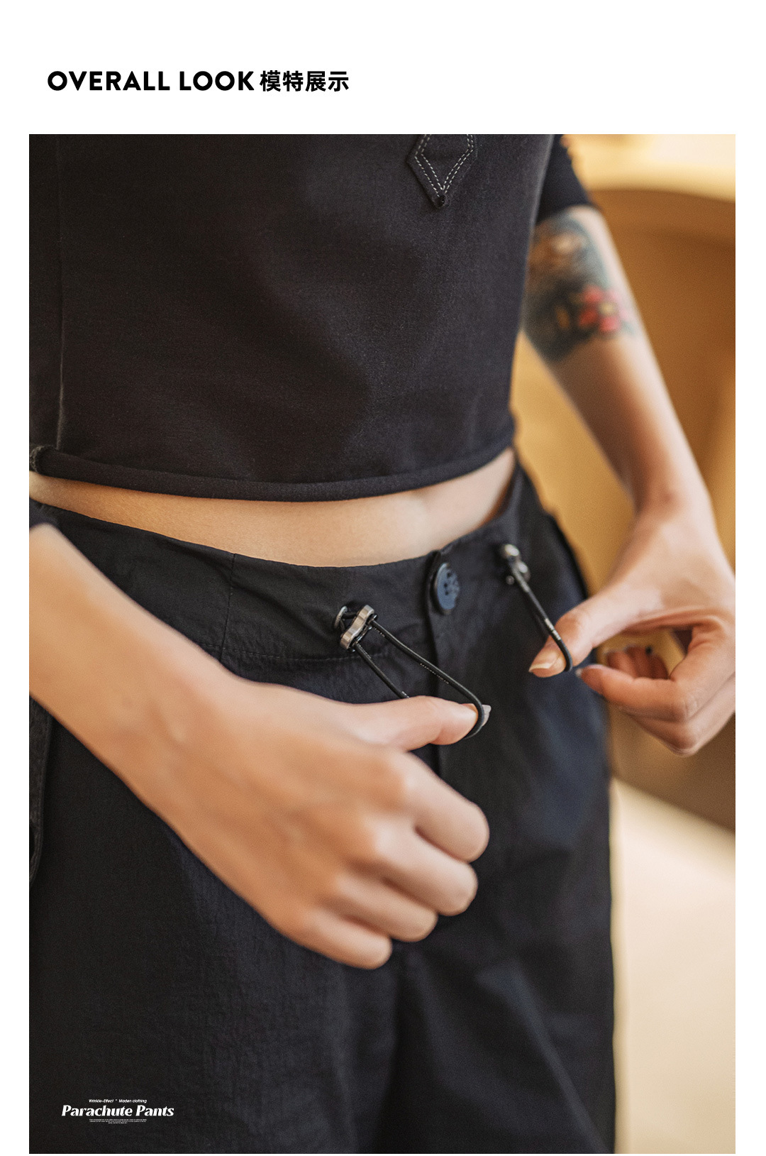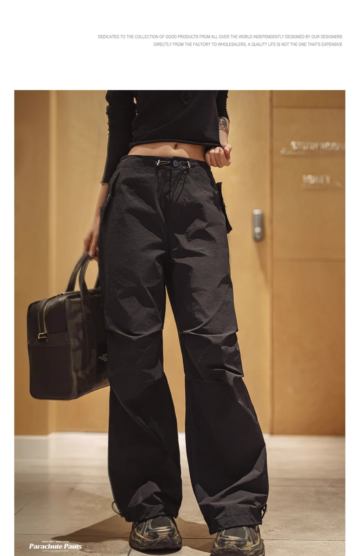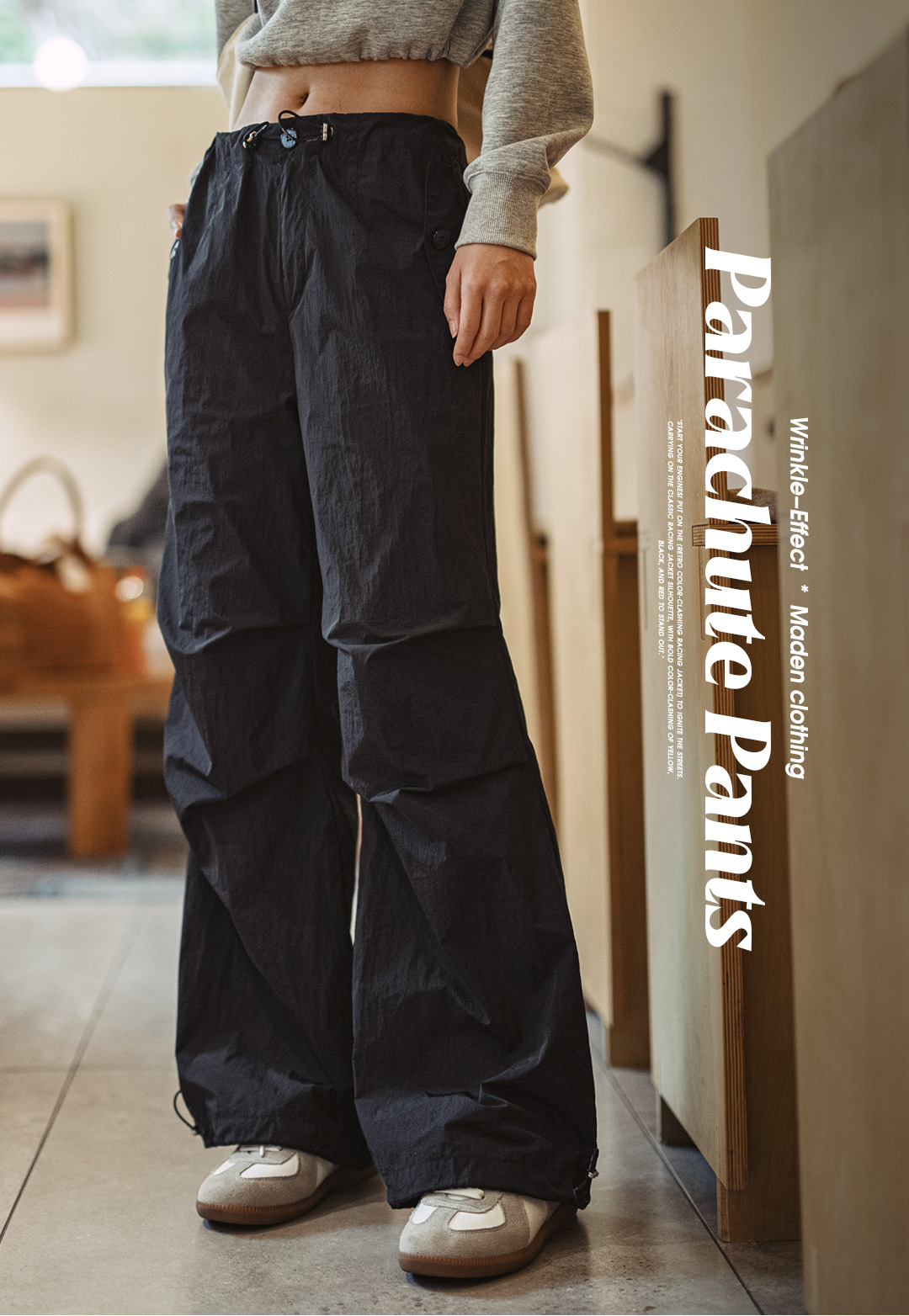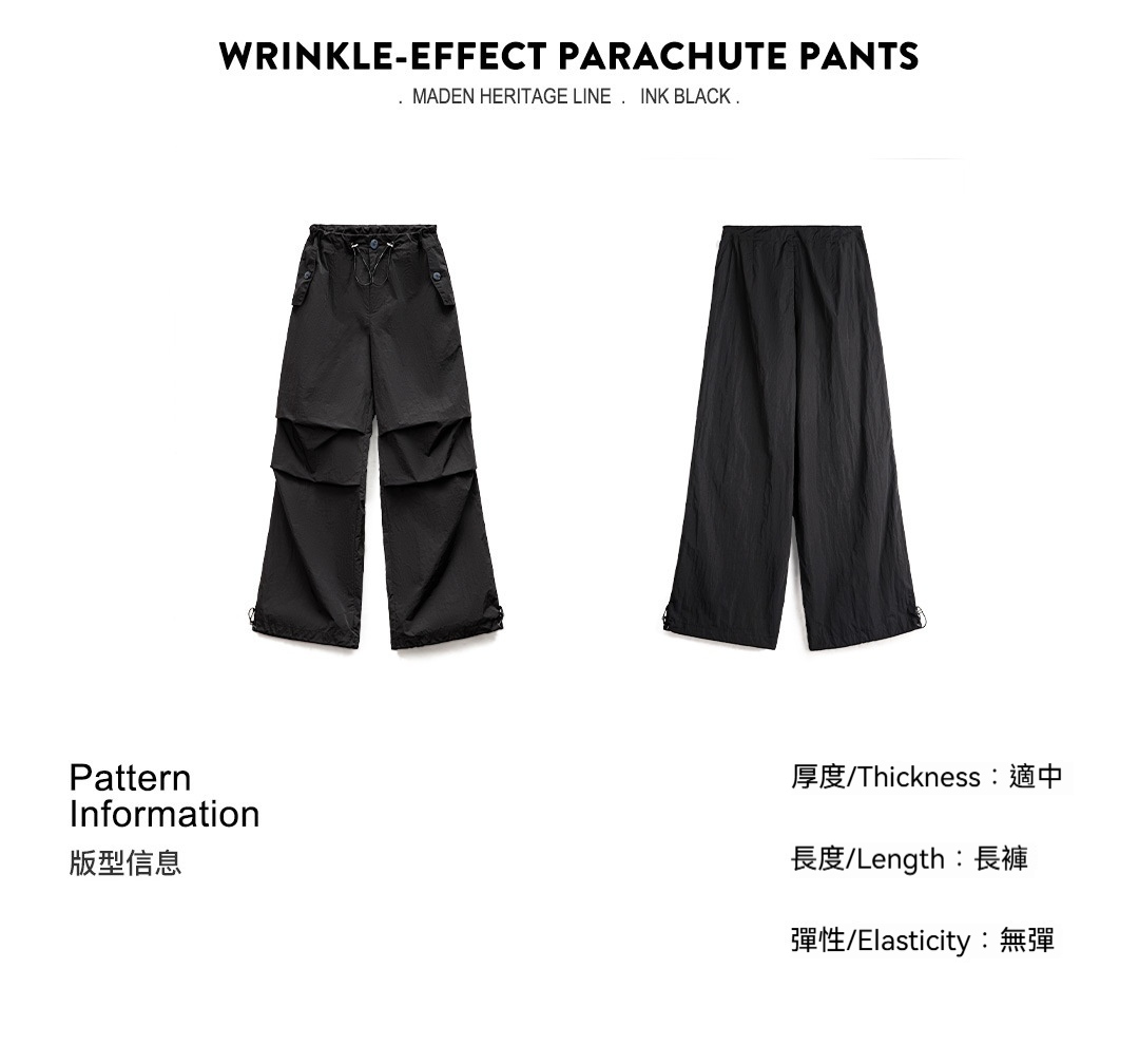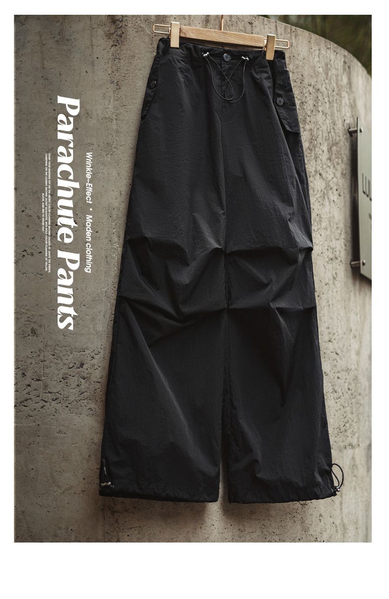 美式褶皺高街工裝vibe風傘兵褲闊腿抽繩束脚舞蹈長褲春夏女