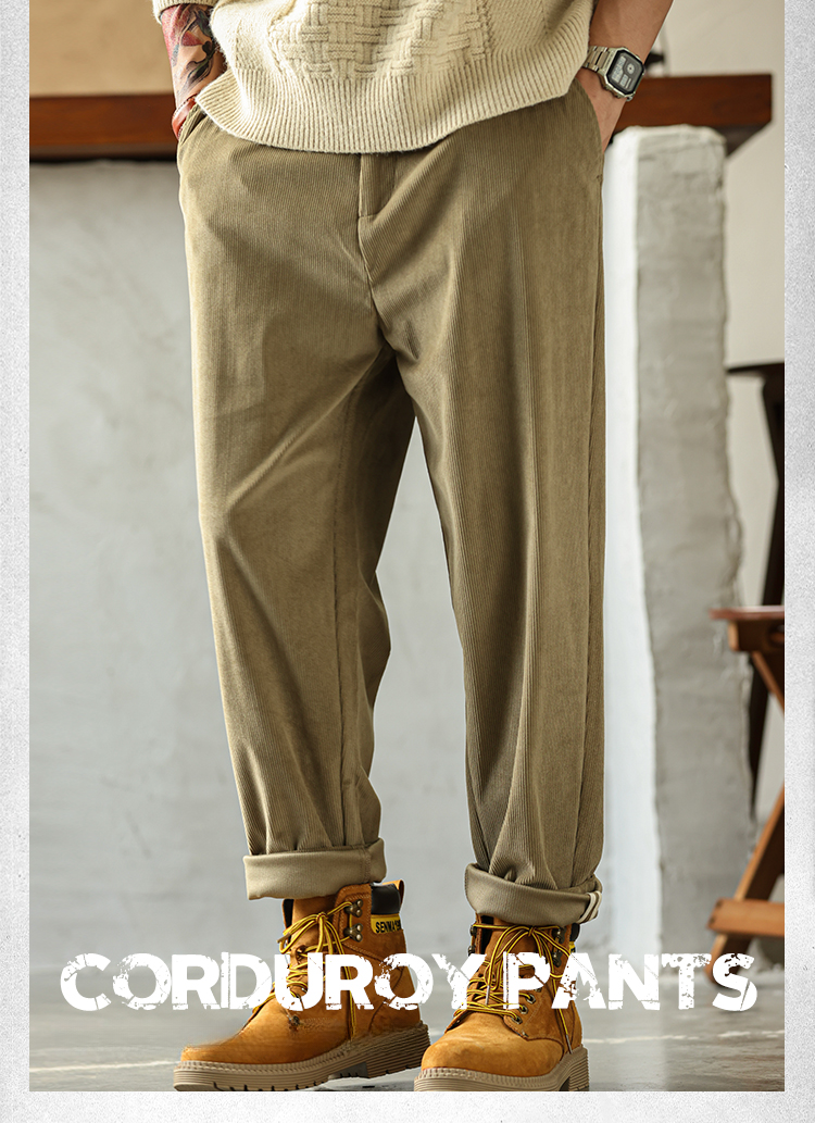 美式重磅燈芯絨休閒褲男寬鬆加絨百搭卡其色小錐形長褲秋冬