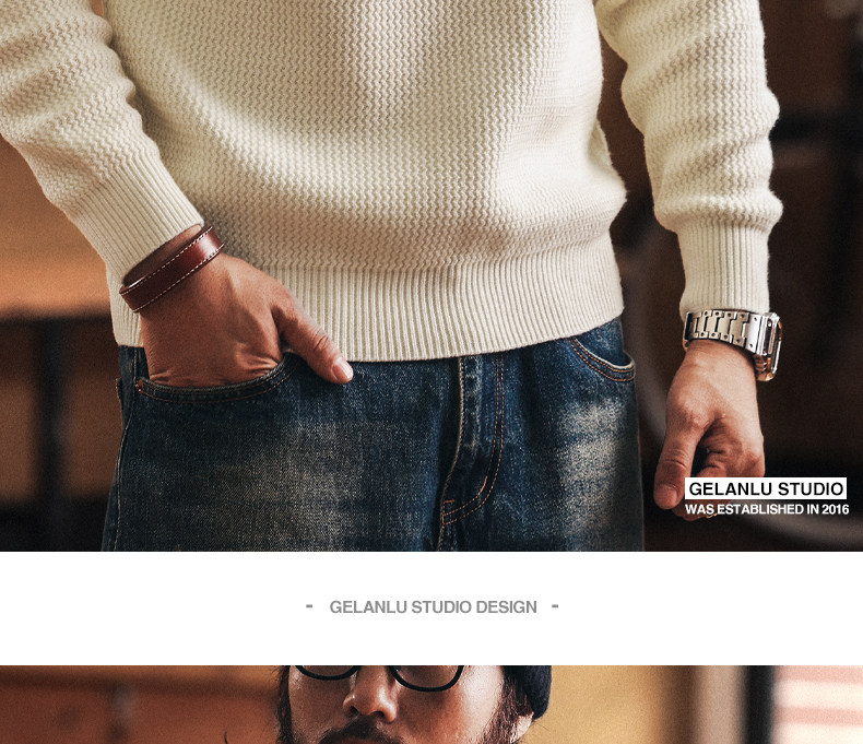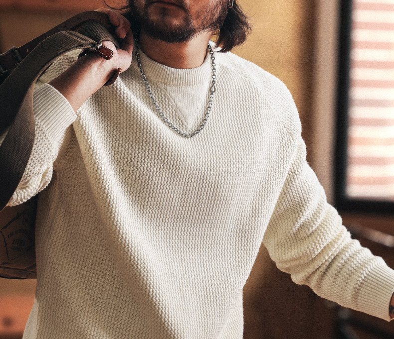 美式重磅7針粗線男士毛衣秋冬新款慵懶風針織打底衫男