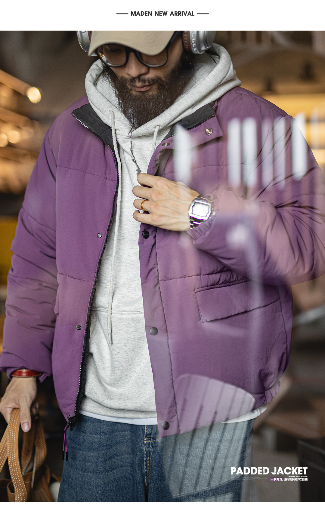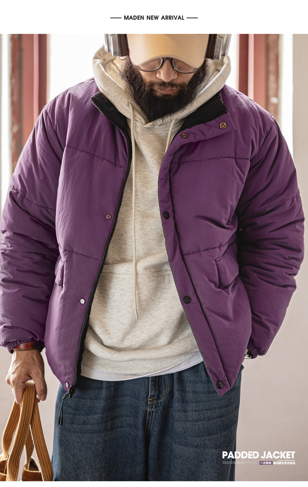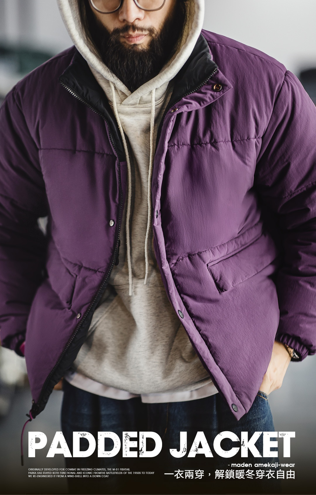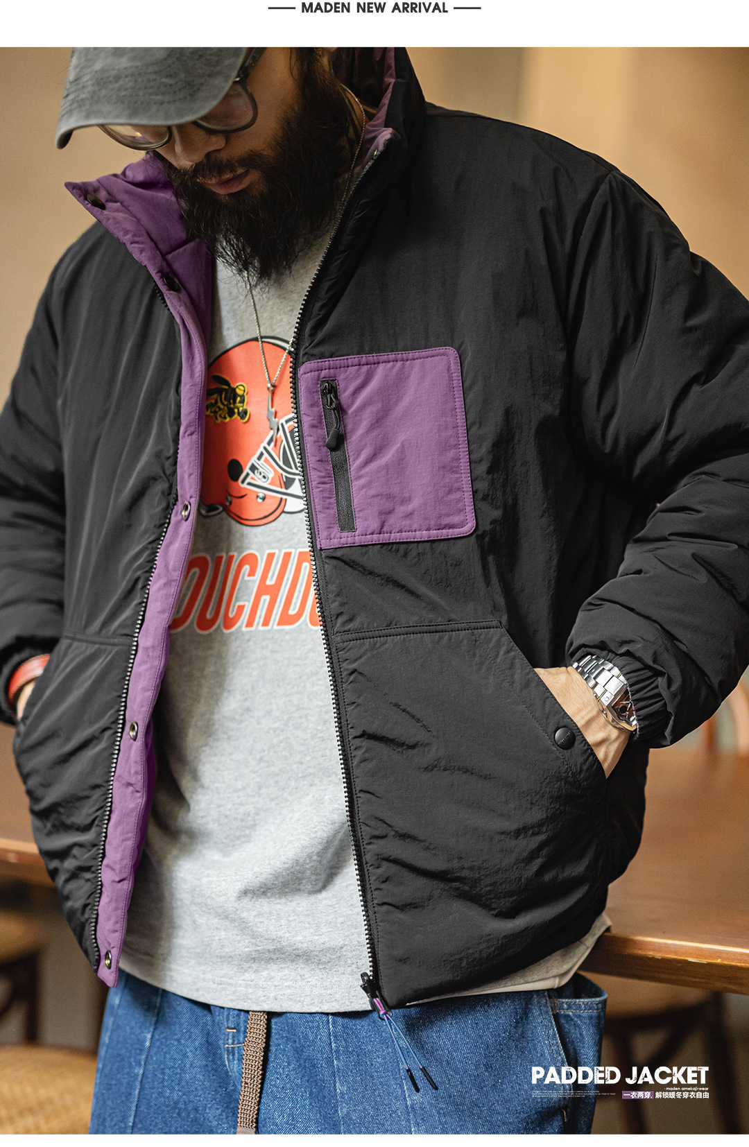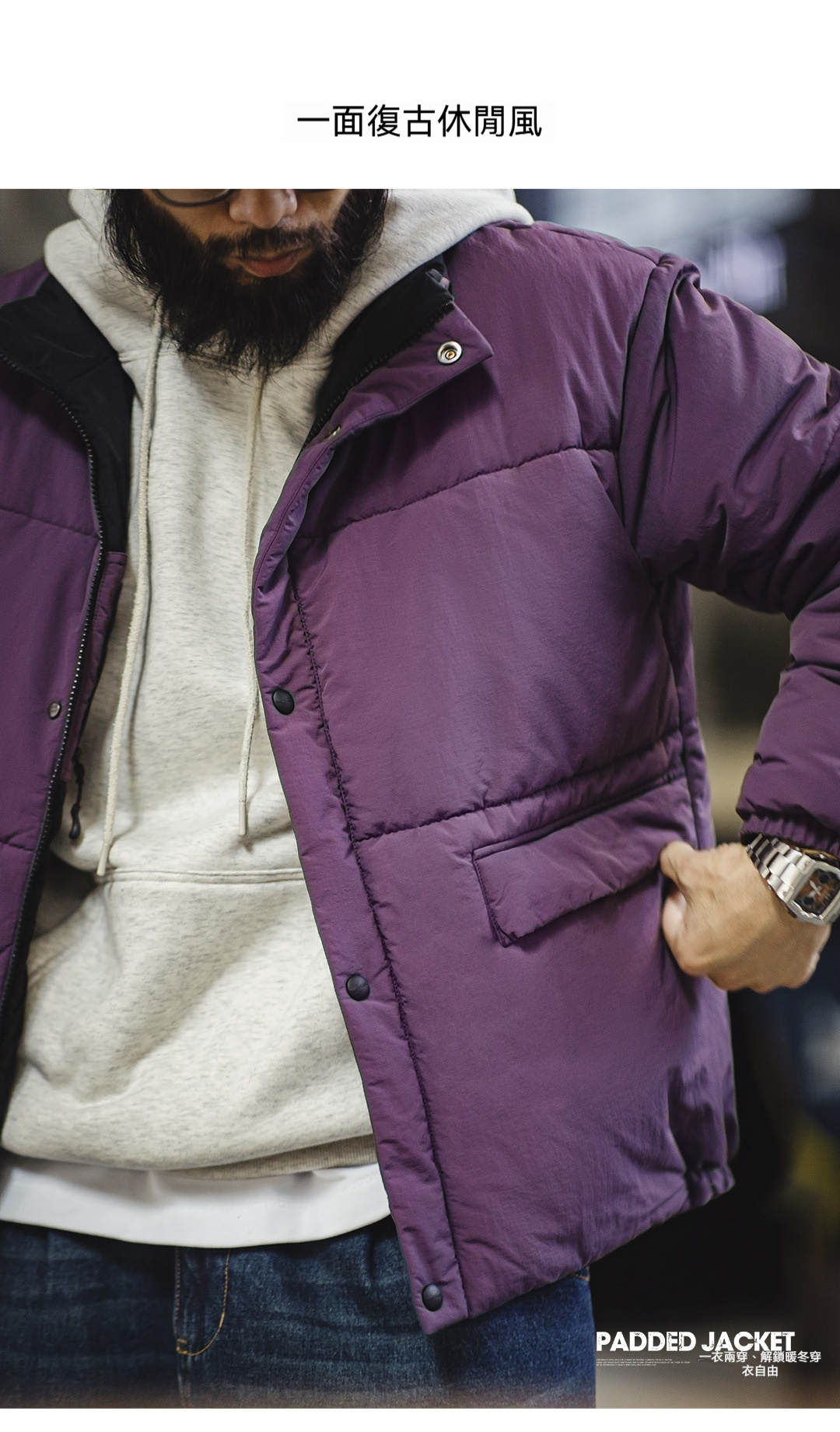 美式雙面穿保暖夾克山系加厚保暖棉服短款立領外套男秋冬