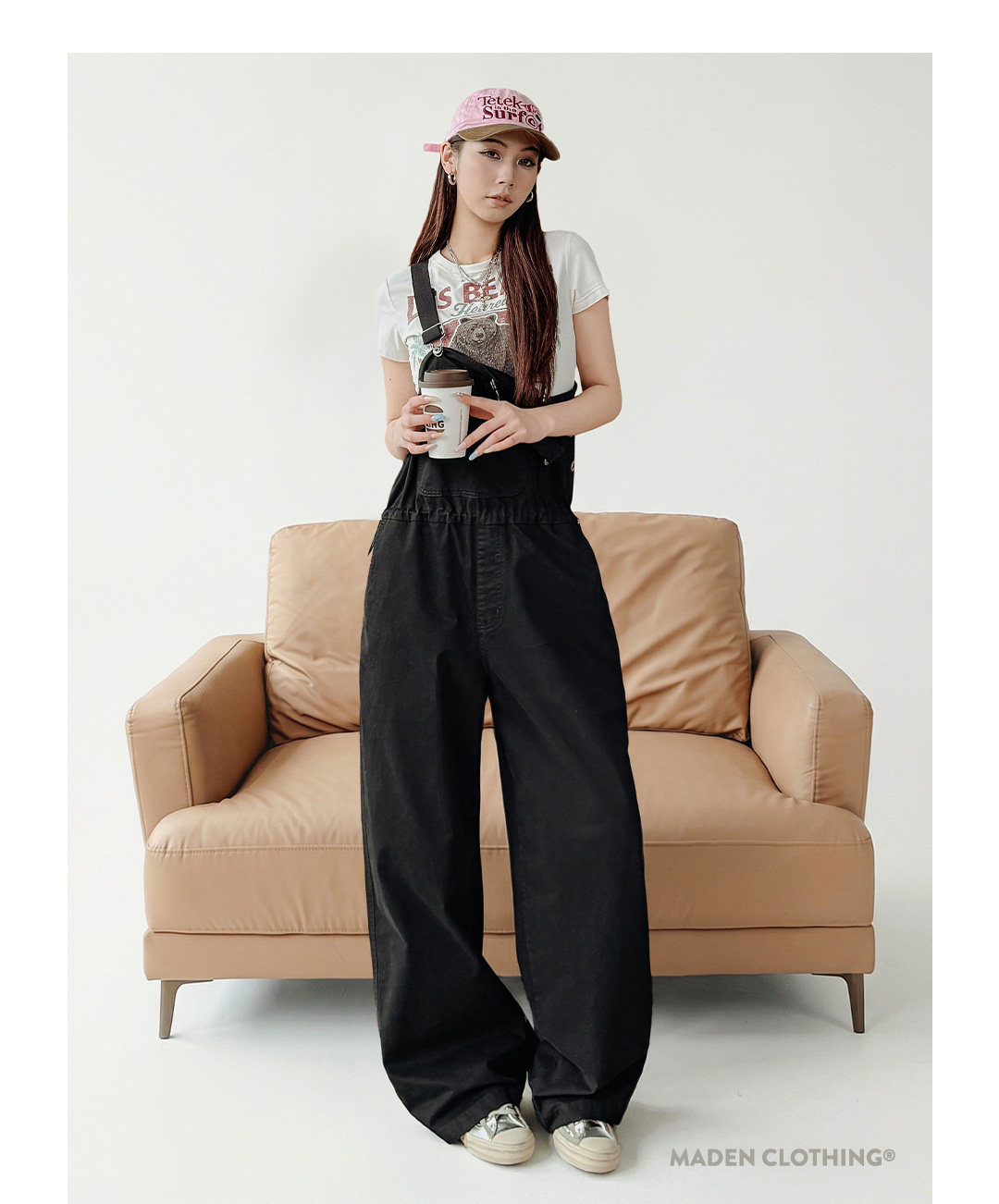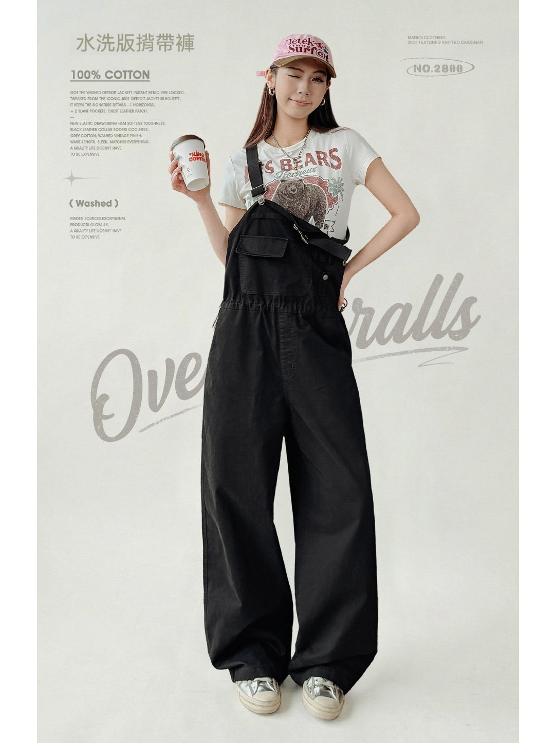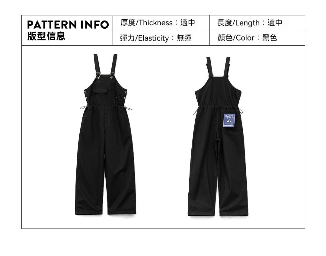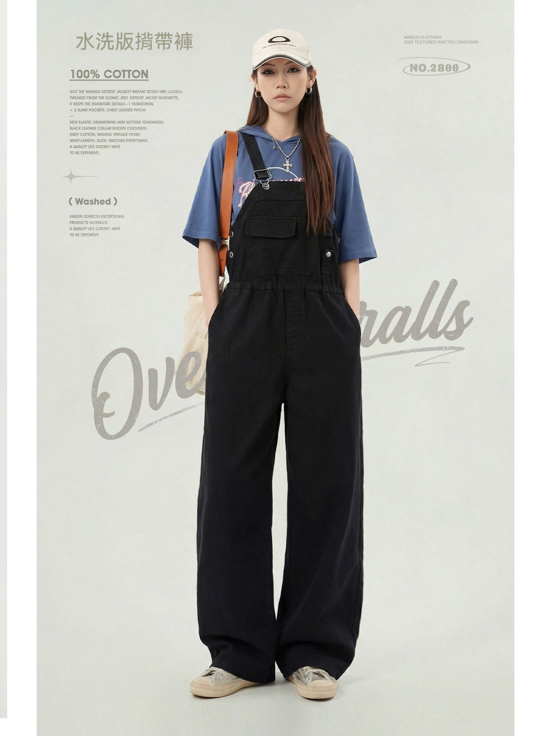 美式黑色闊腿直筒工裝連體背帶褲顯瘦收腰純棉吊帶褲子女士春