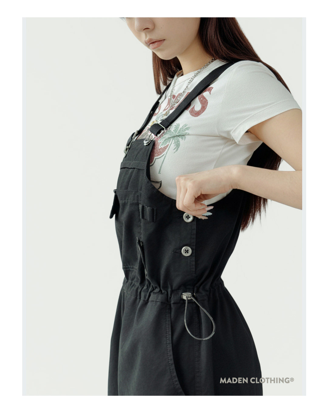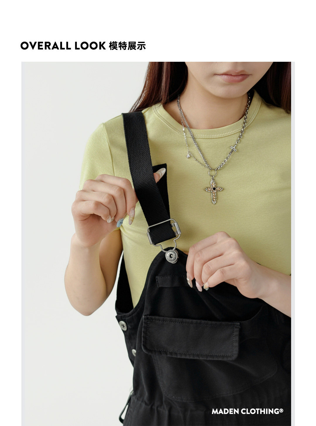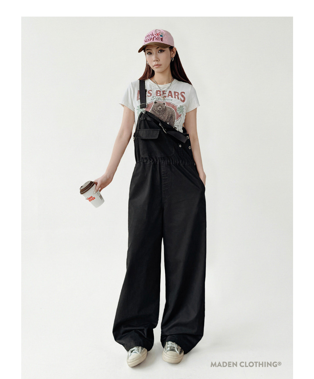 美式黑色闊腿直筒工裝連體背帶褲顯瘦收腰純棉吊帶褲子女士春
