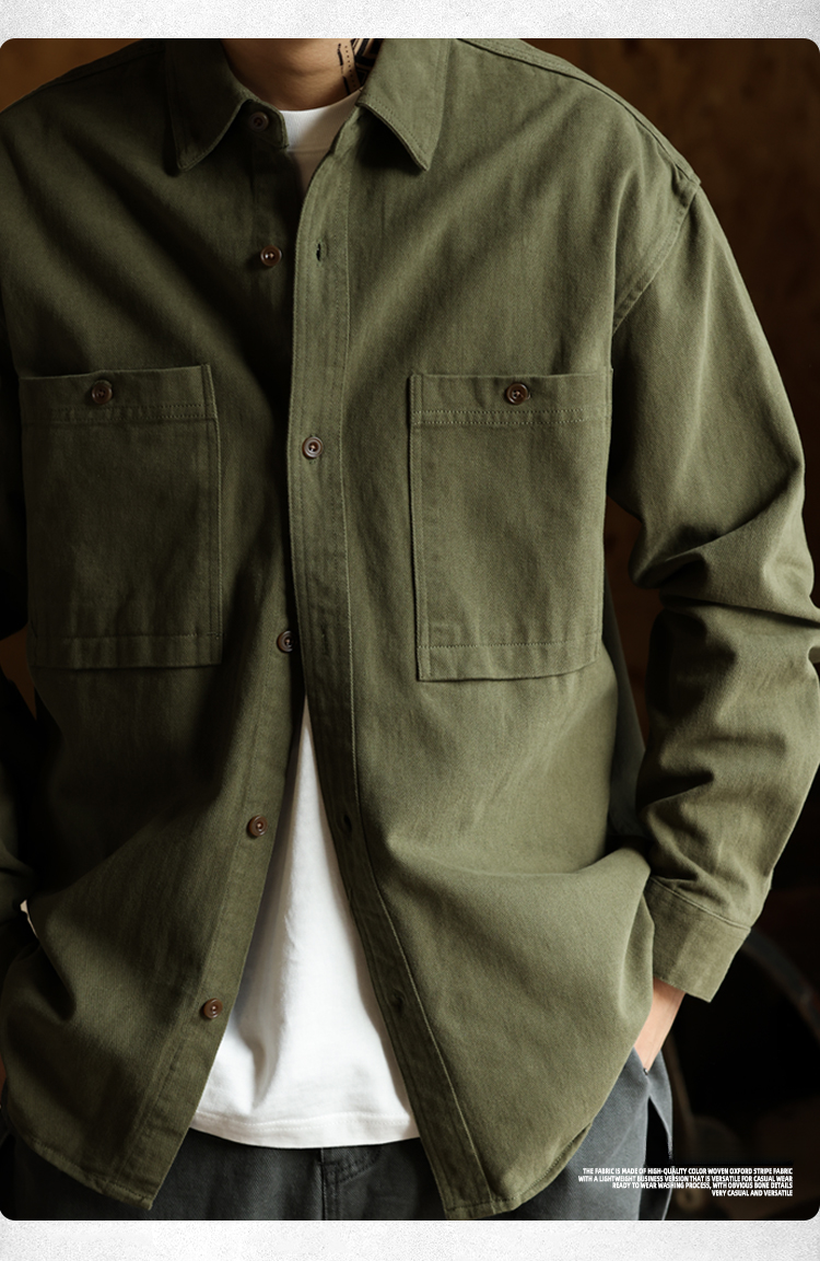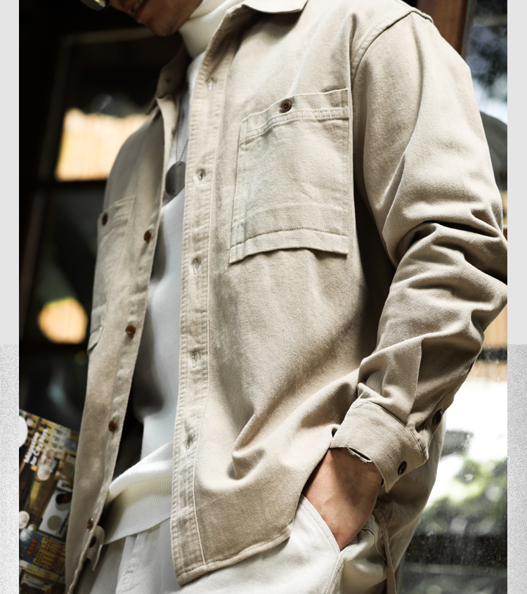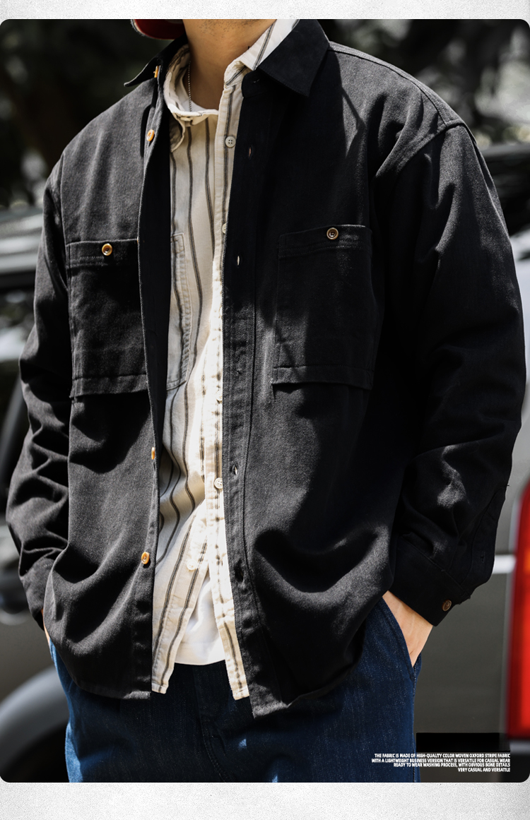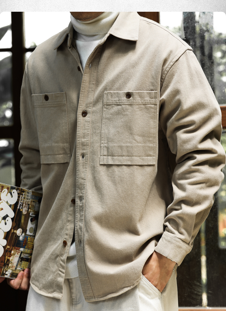 美德拉復古色系長袖襯衫男水洗純棉疊穿外搭日系襯衣外套秋