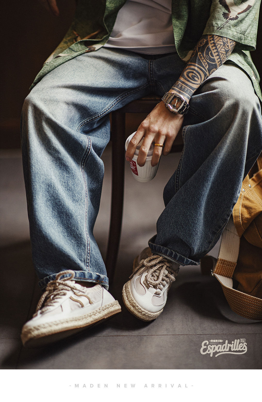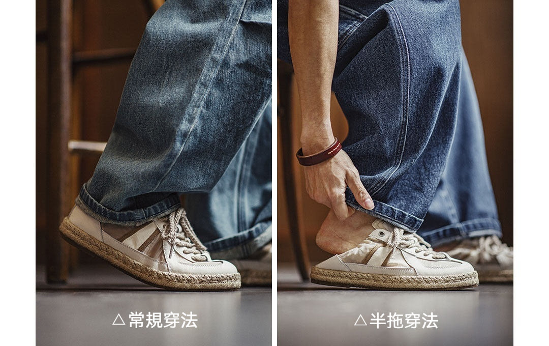 草編德訓鞋新款春夏季休閒透氣布鞋潮薄款板鞋半拖男士漁夫鞋