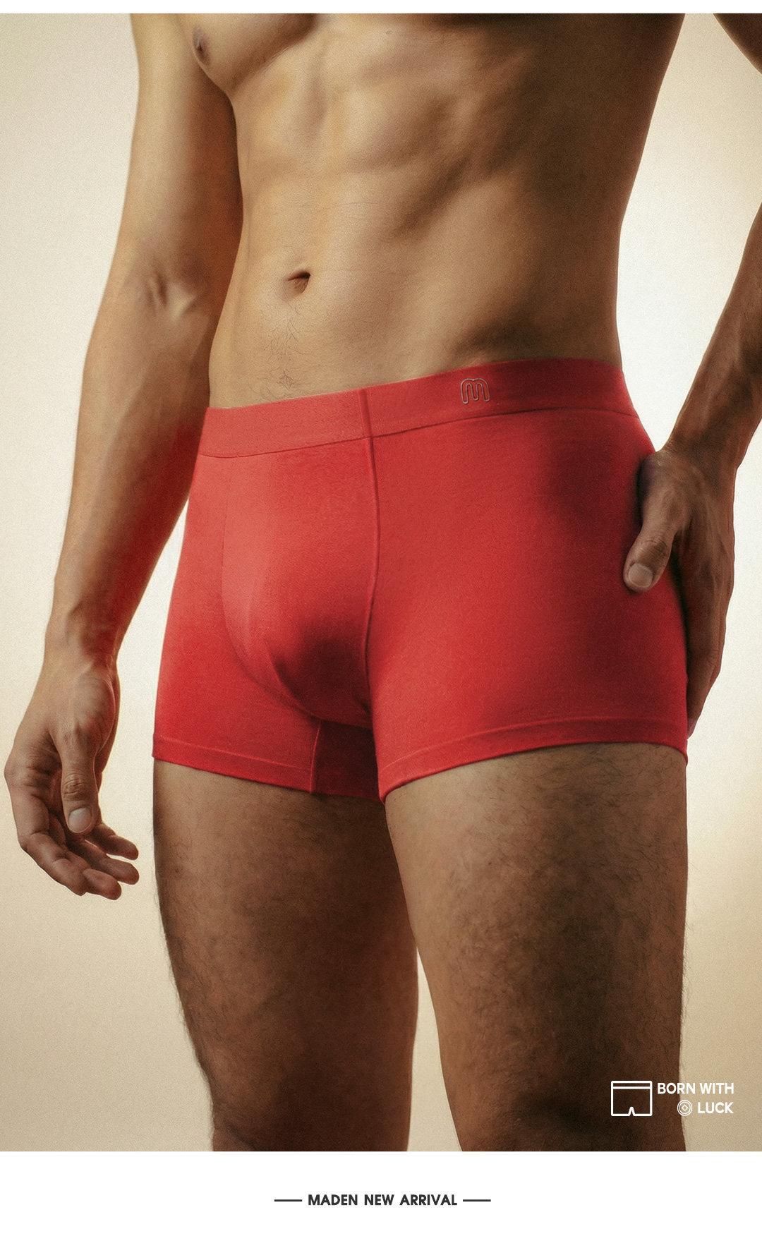 莫代爾內褲男大紅色本命年親膚透氣新年平角搖褲四角短褲