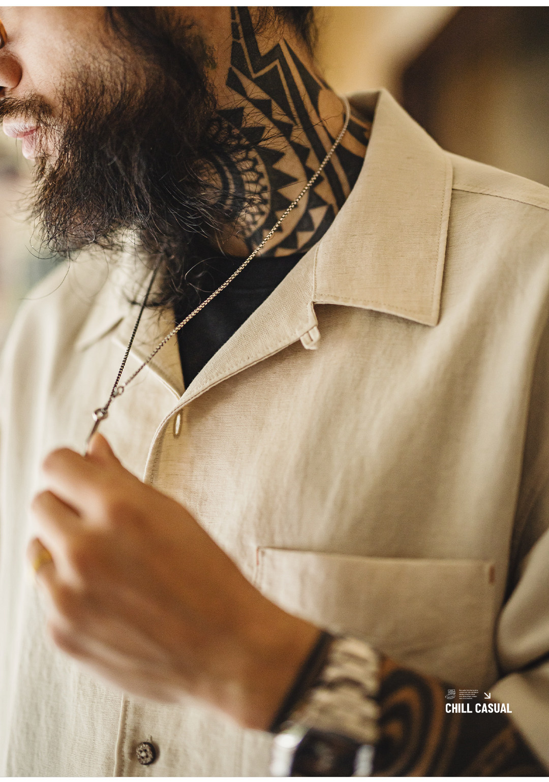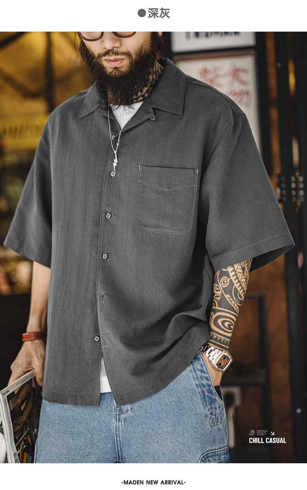 萊賽爾短袖襯衫天絲古巴領鬆弛感襯衣美式老錢風外套男夏