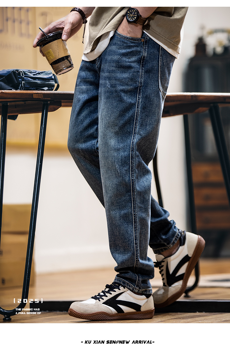 萊賽爾美式牛仔褲男春夏2025新款復古水洗休閒錐形褲男士薄款長褲