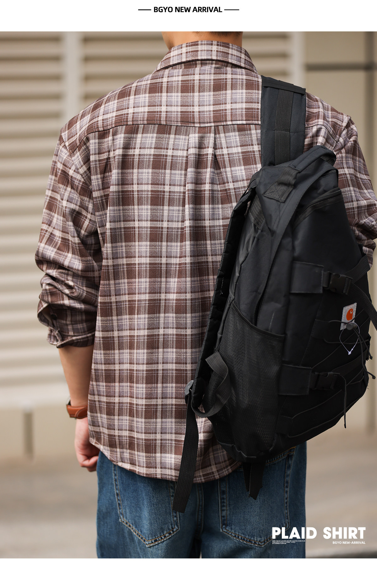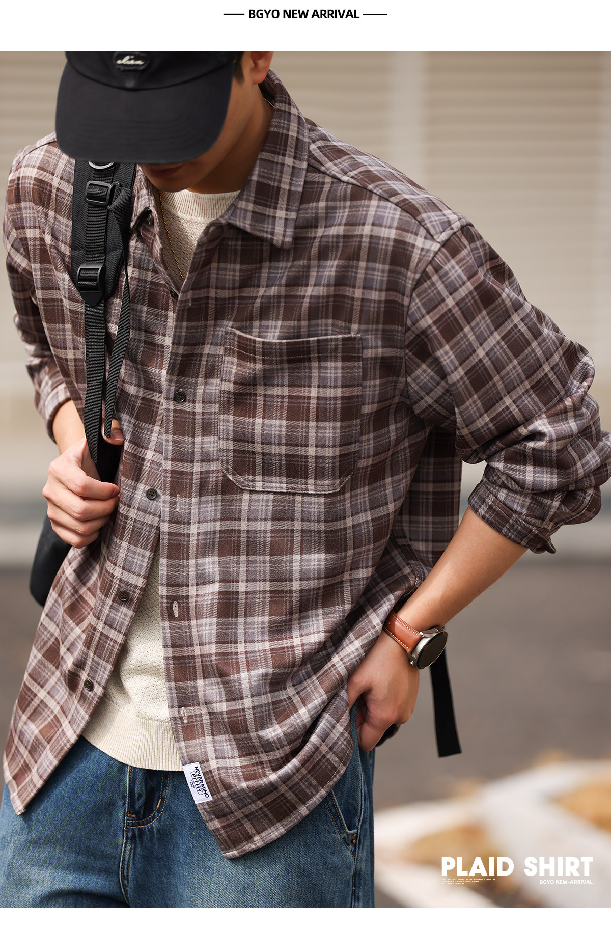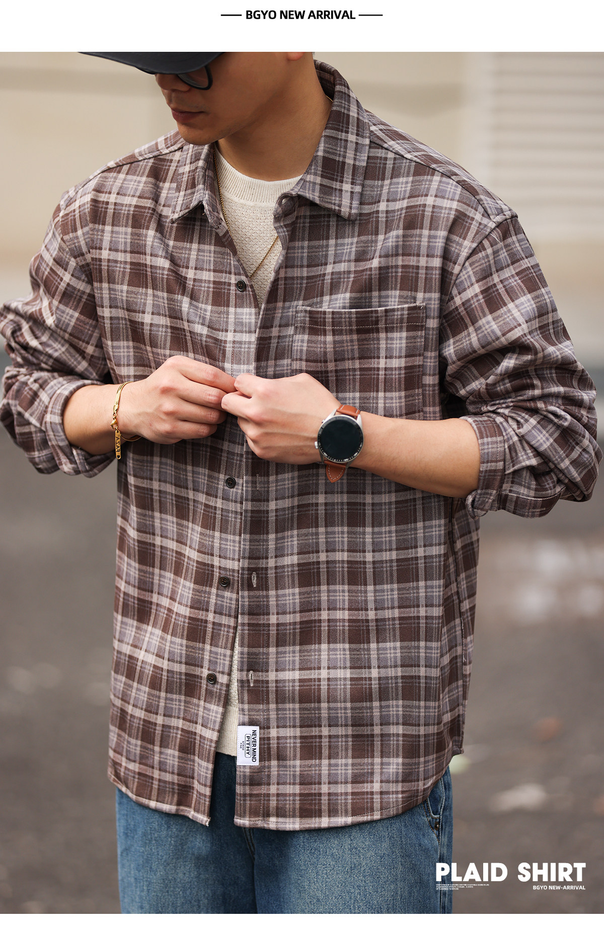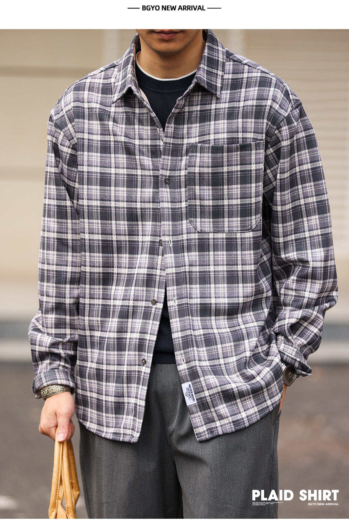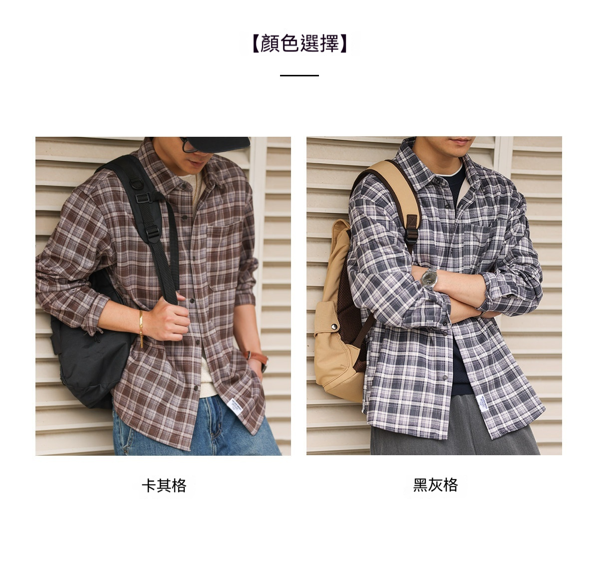 蘇格蘭格紋長袖襯衫男士寬鬆日系復古Vintage格子襯衣春