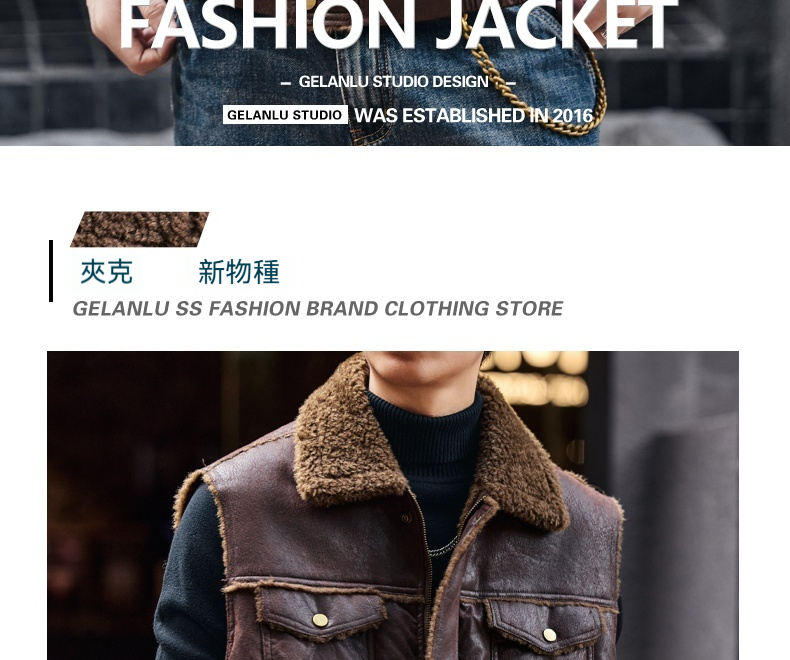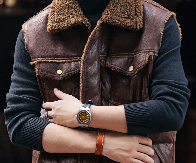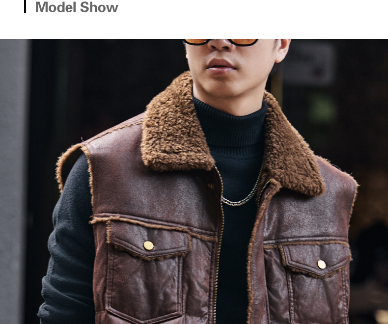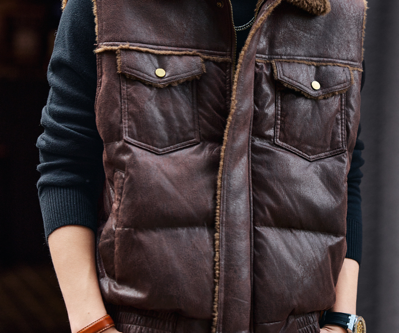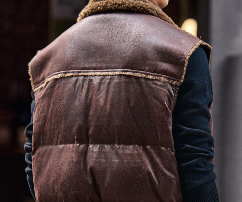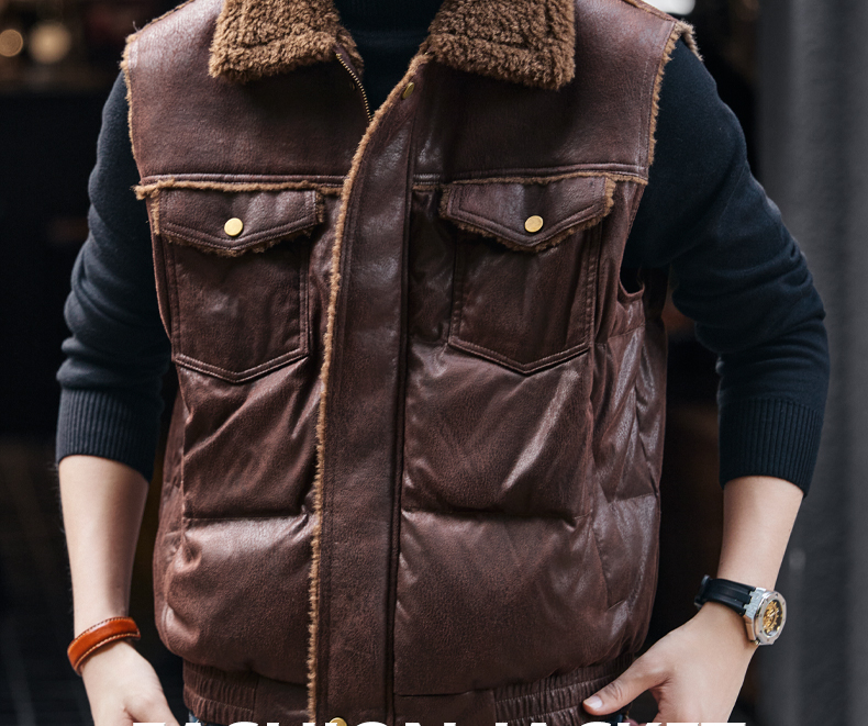 裂紋皮加厚羊羔絨棉衣馬甲男外套秋冬保暖棉服背心