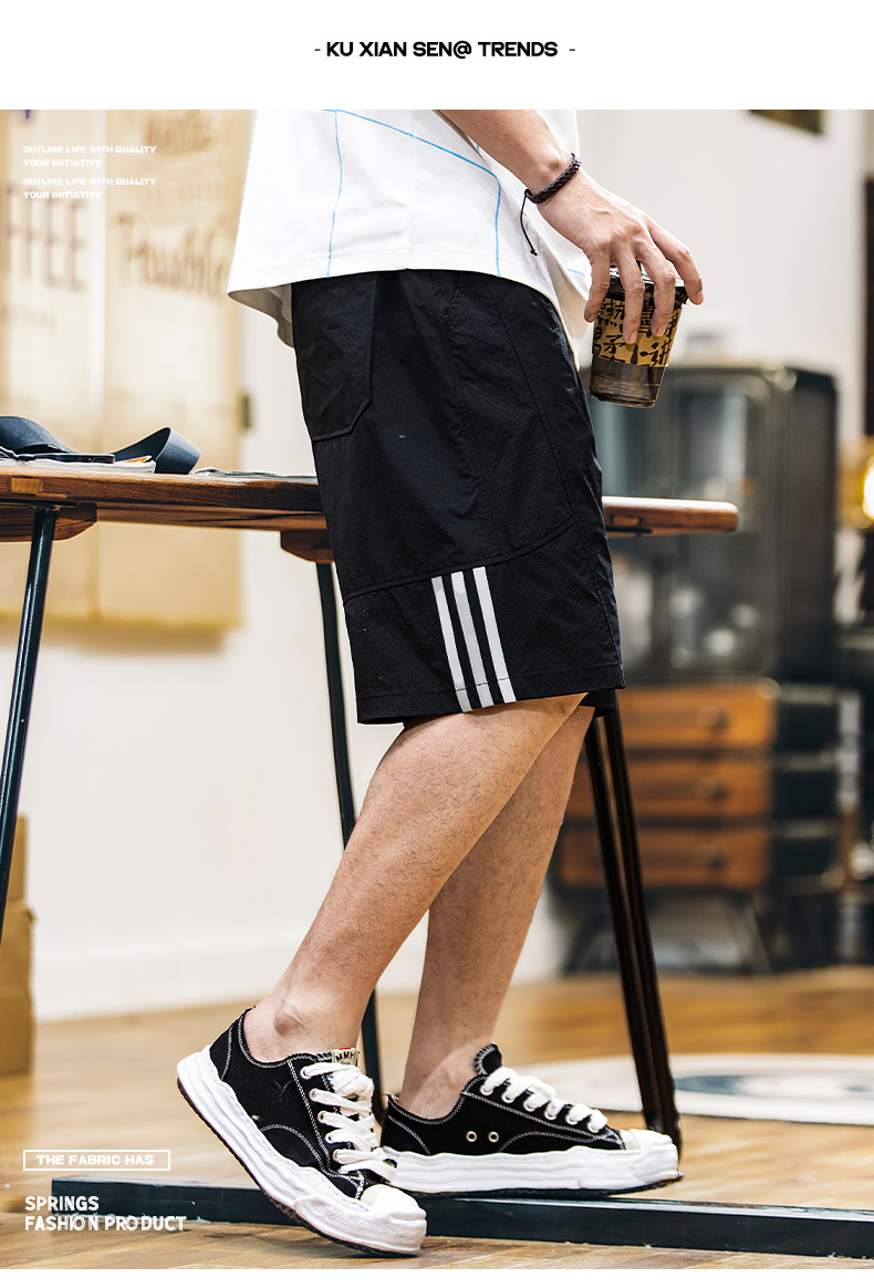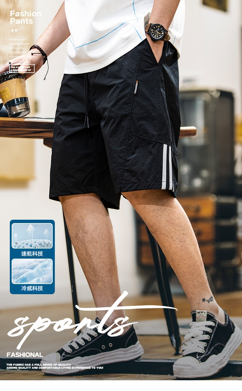 輕量化戶外速幹短褲男2025夏季新款反光條杠凉感運動五分褲子男