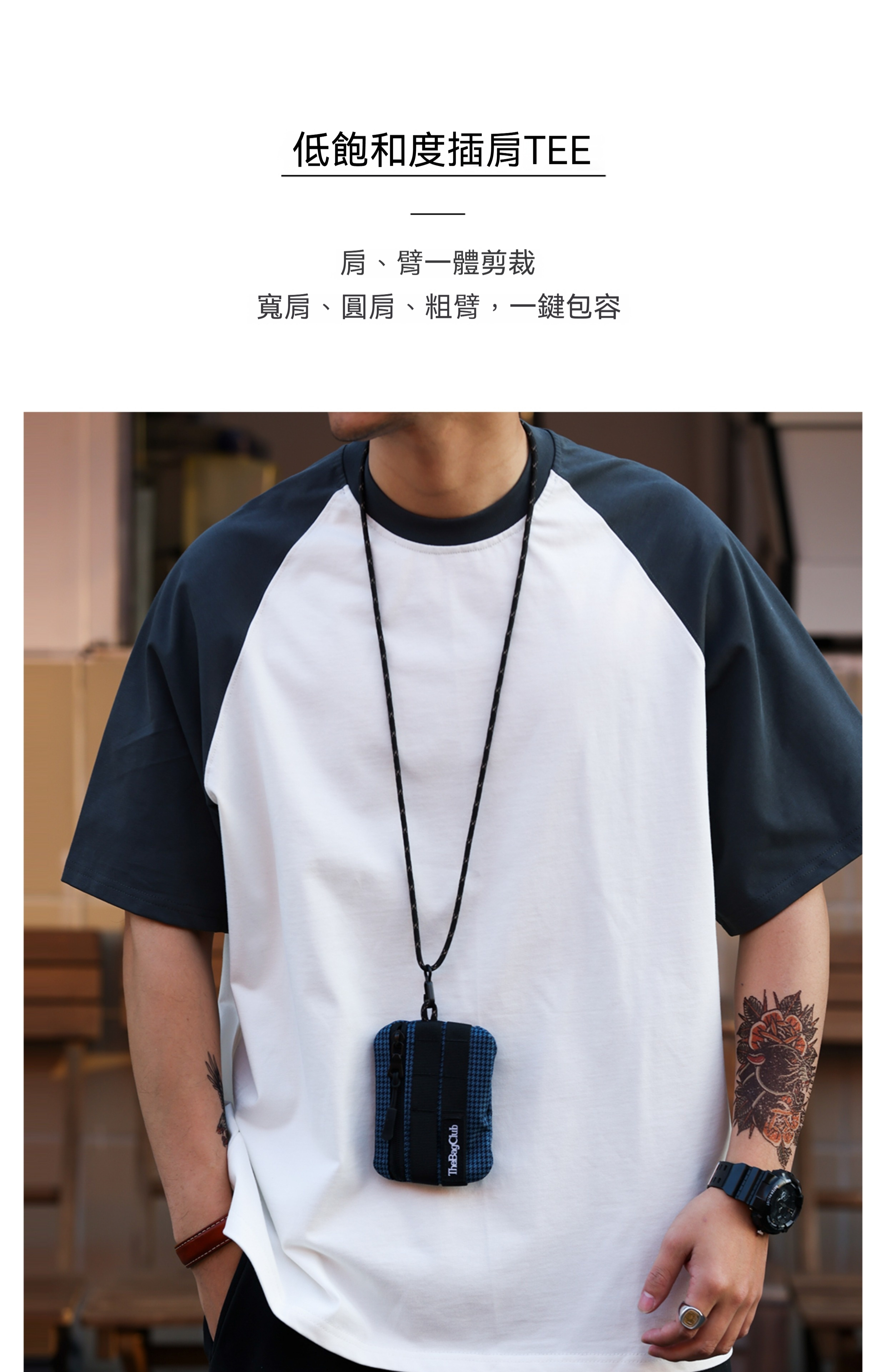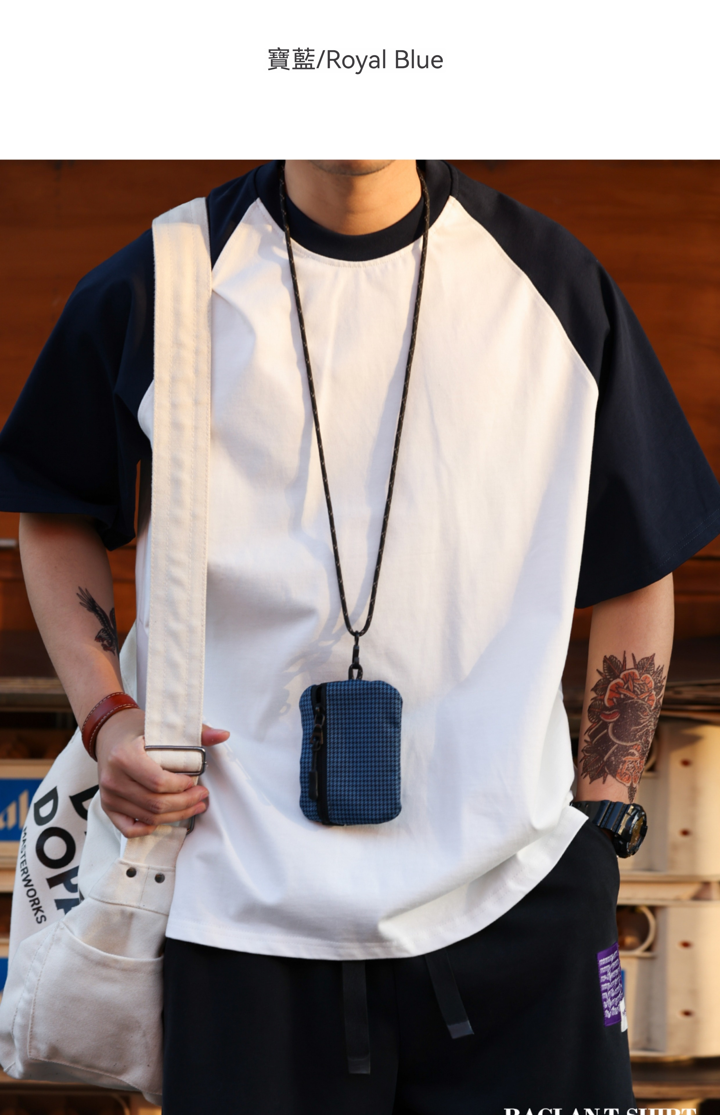 重磅305g撞色挿件短袖T恤男美式休閒寬鬆運動百搭打底衫