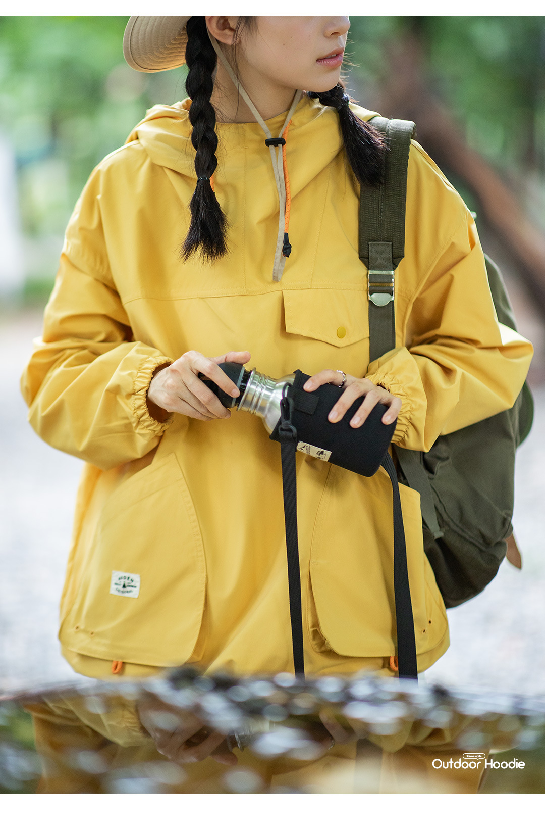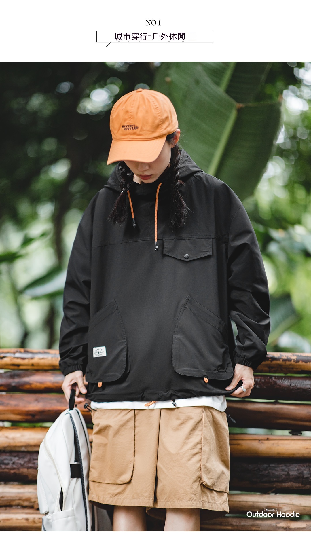 山系戶外休閒多口袋連帽衝鋒衣防風套頭美式夾克外套