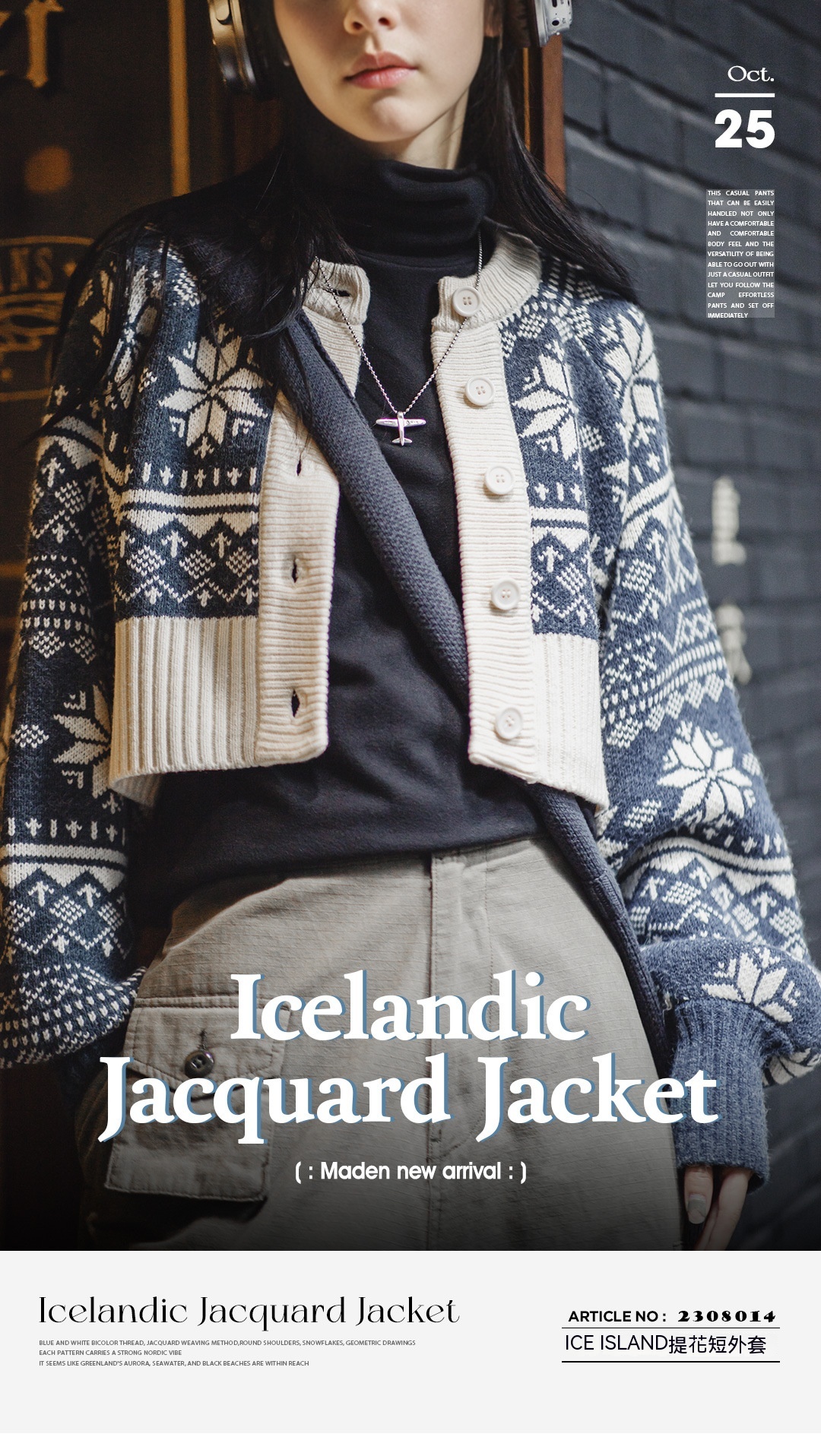美式休閒提花針織衫圓領短款毛衣外套女秋冬