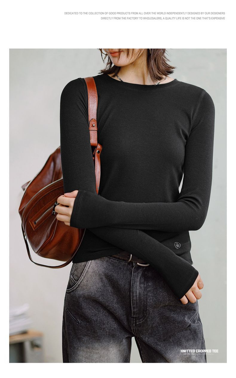 針織發熱打底衫純色親膚修身顯瘦內搭上衣休閒長袖T恤秋季女