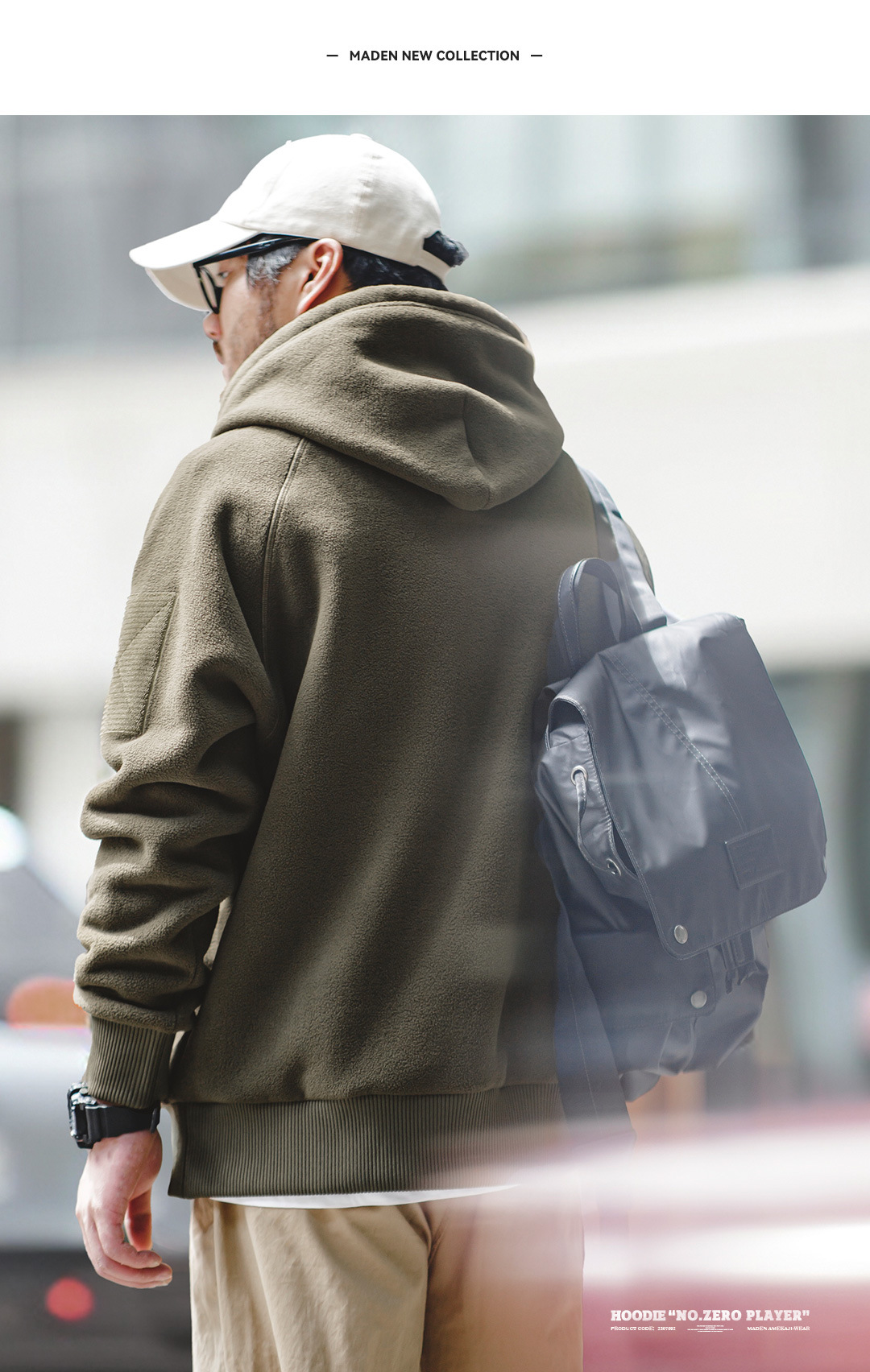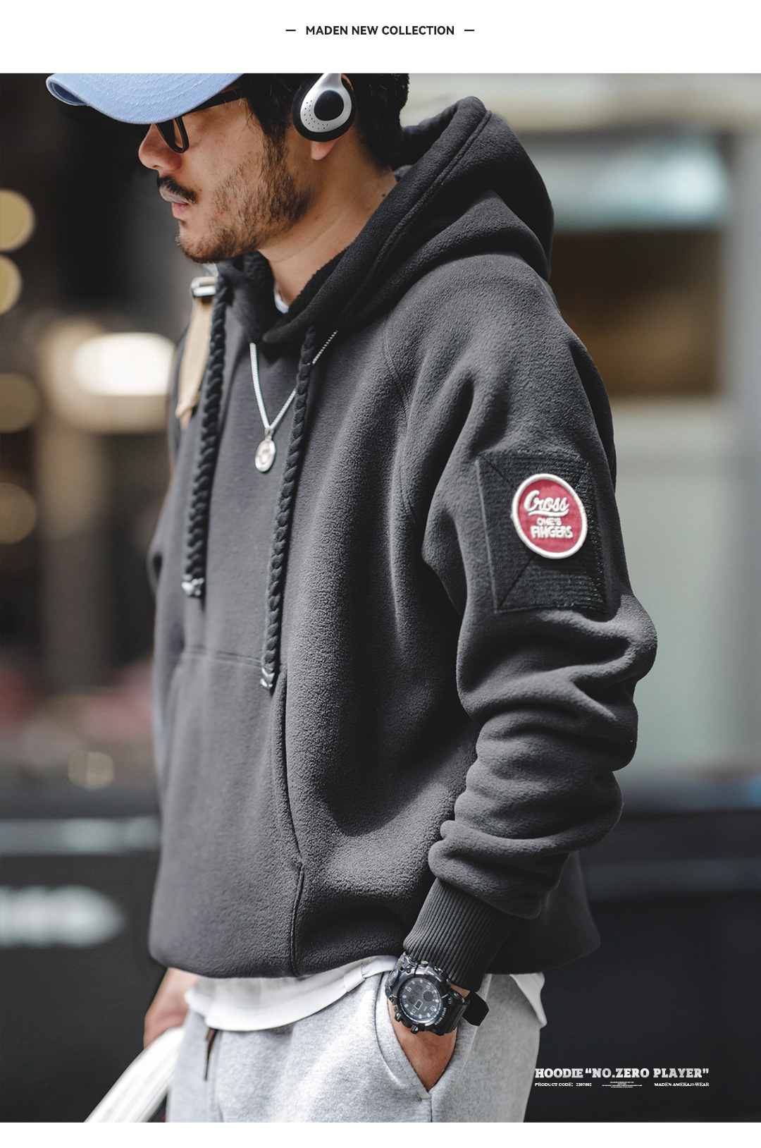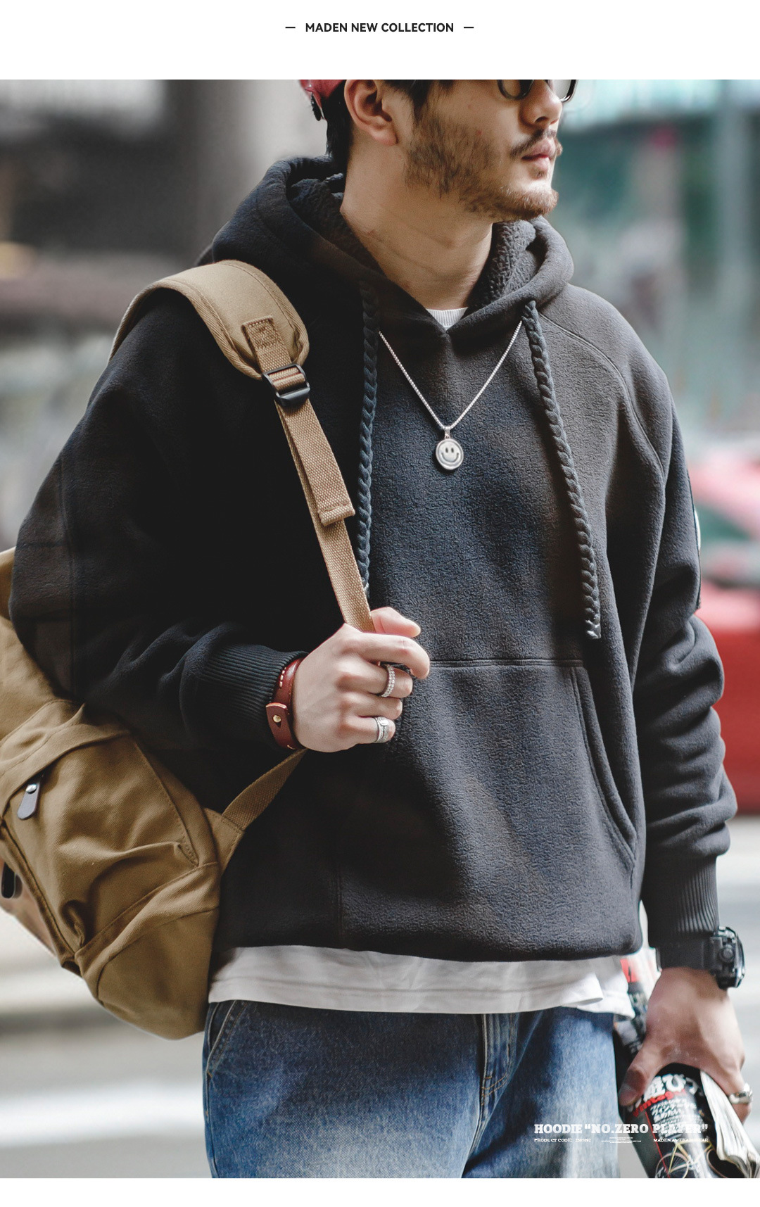 美式休閒重磅搖粒絨衛衣連帽百搭加厚抓絨套頭衫男秋冬
