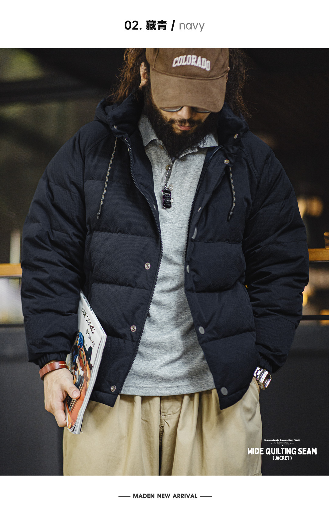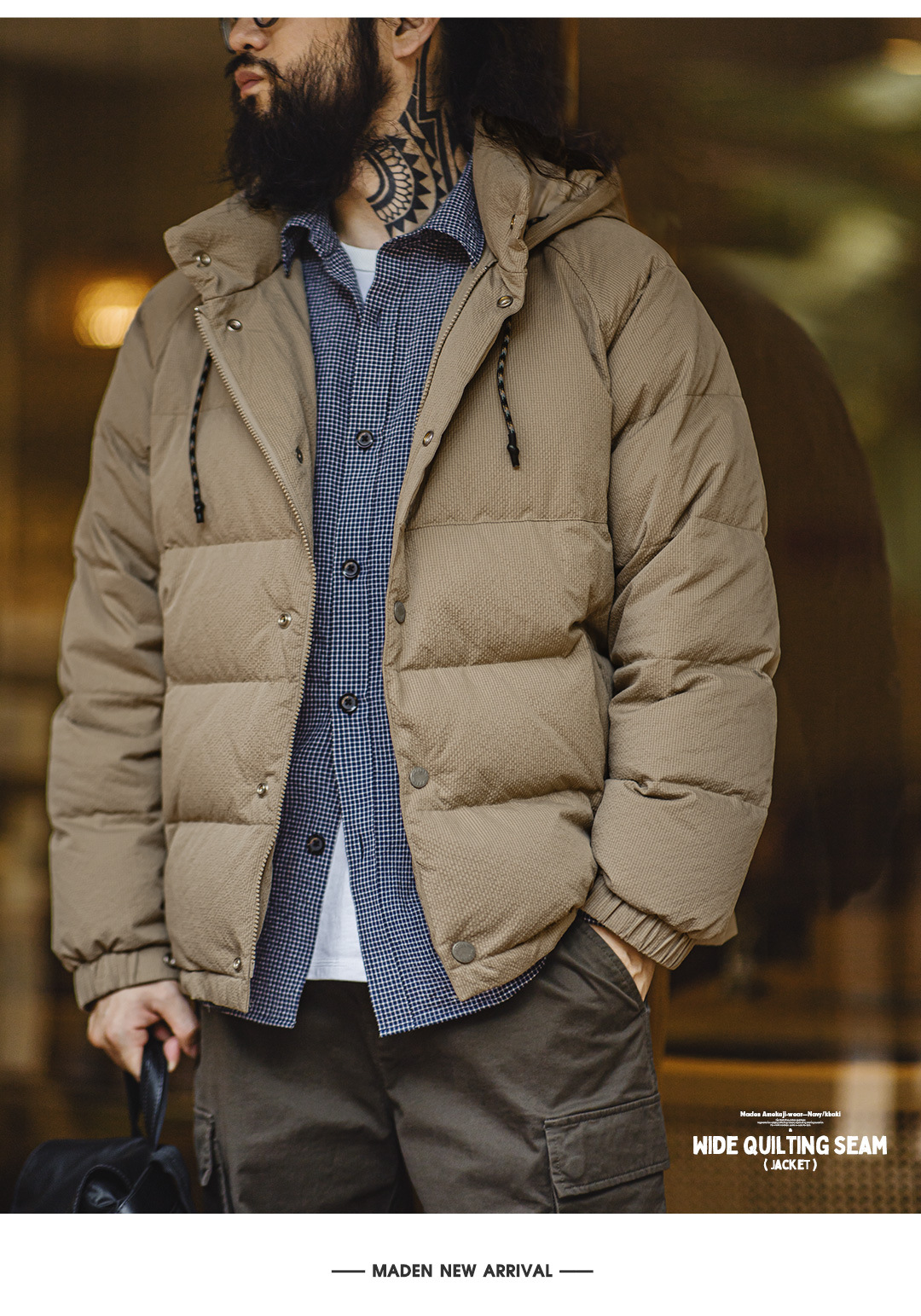 美式復古寬絎縫羽絨服90白鴨絨連帽保暖面包服男冬