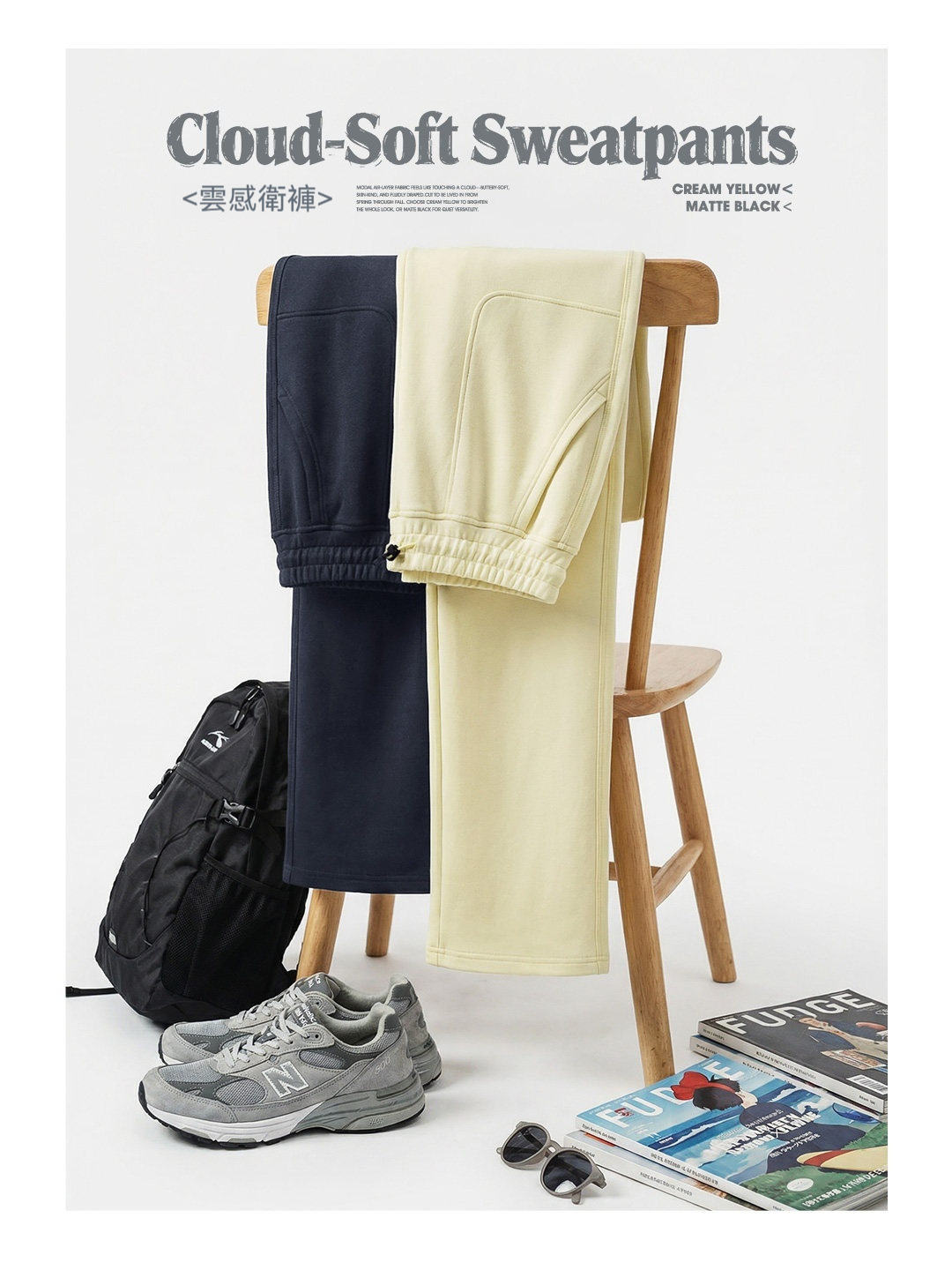 黑色窄版直筒闊腿休閒老錢風長褲針織空氣層雲感衛褲子女士春