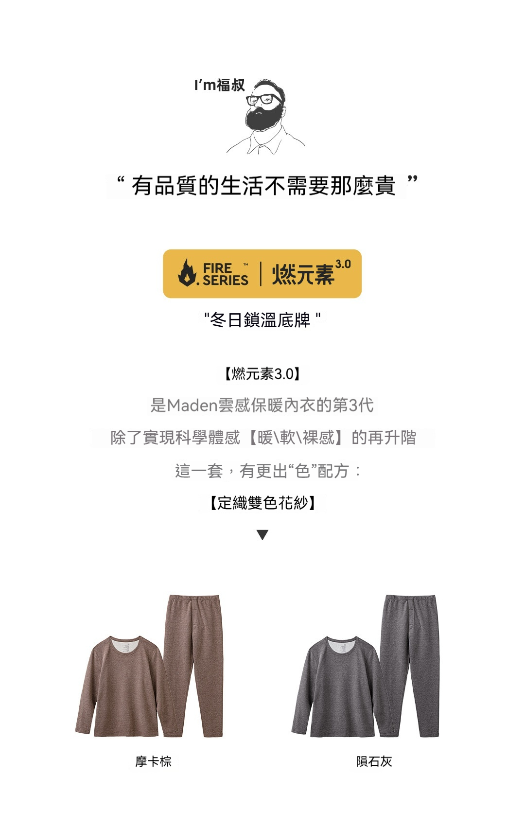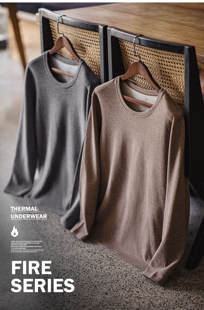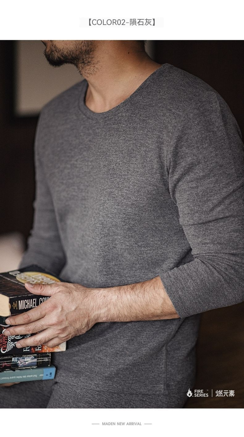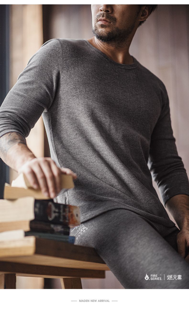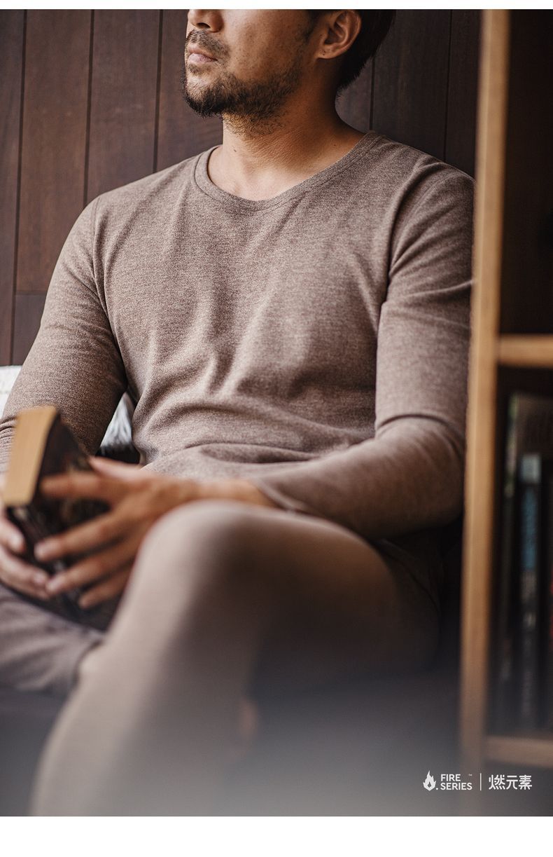 “燃元素”保暖內衣套裝花紗雙面磨絨打底衫秋衣褲男冬