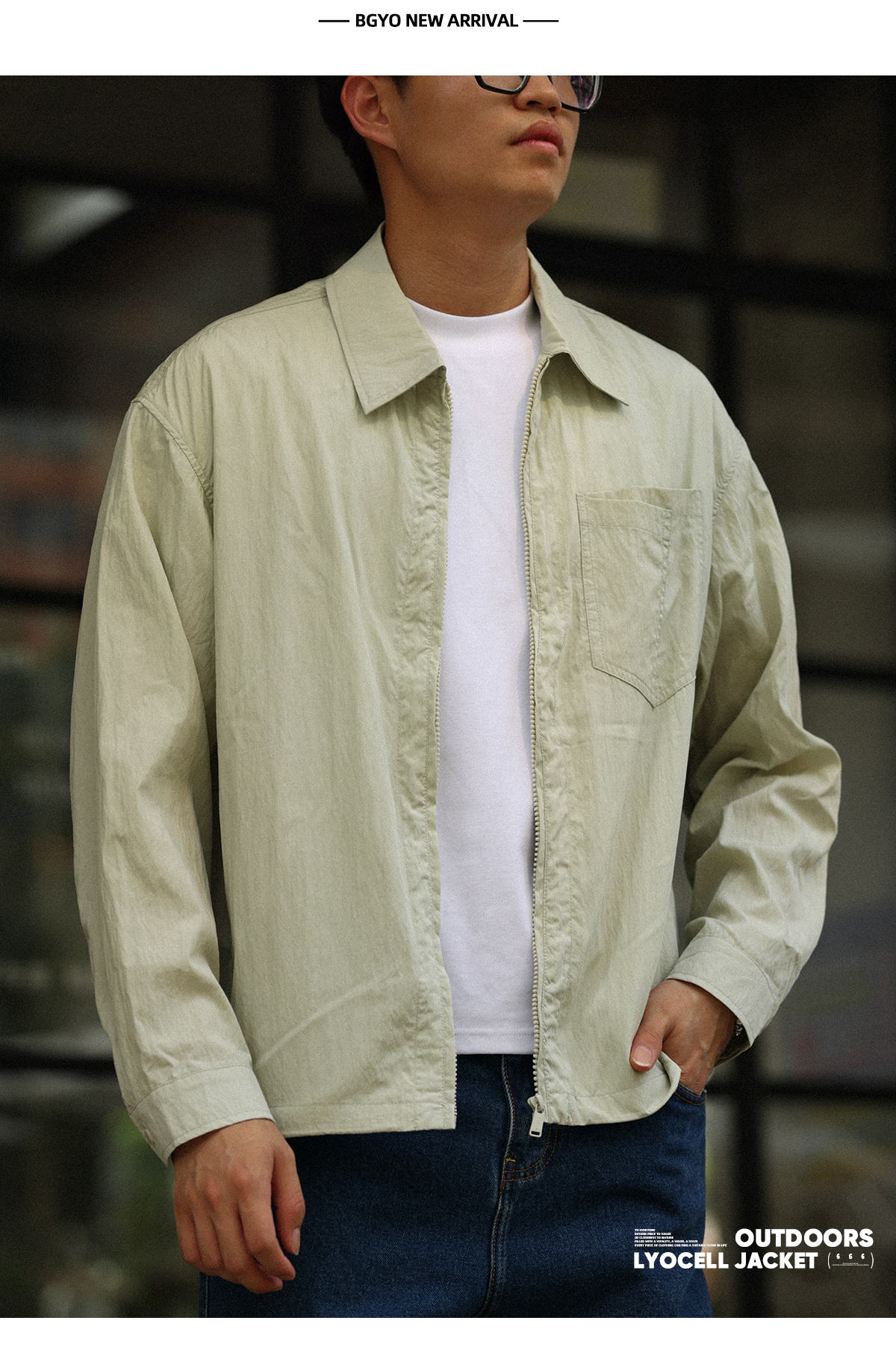 110g原紗萊賽爾薄款夾克男美式休閒拉鍊翻領外搭外套秋