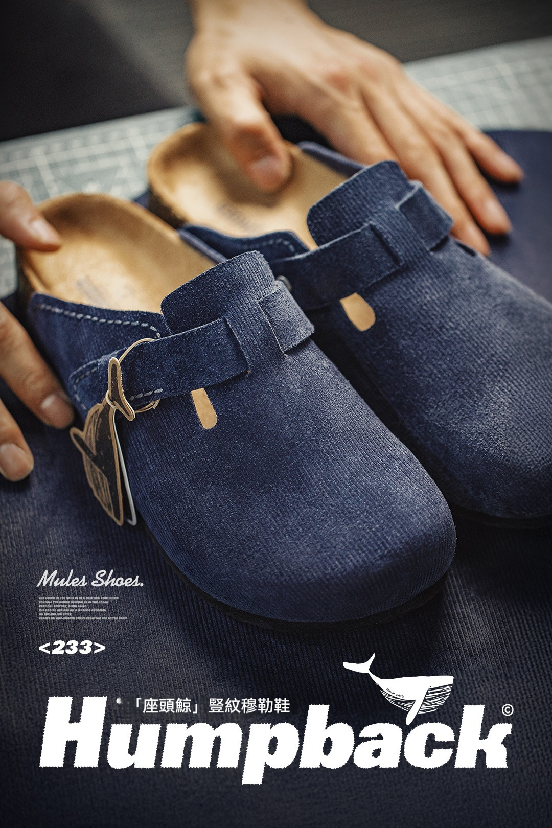 2025夏季新款座頭鯨藍色穆勒鞋男休閒平底全包頭外穿半拖鞋子