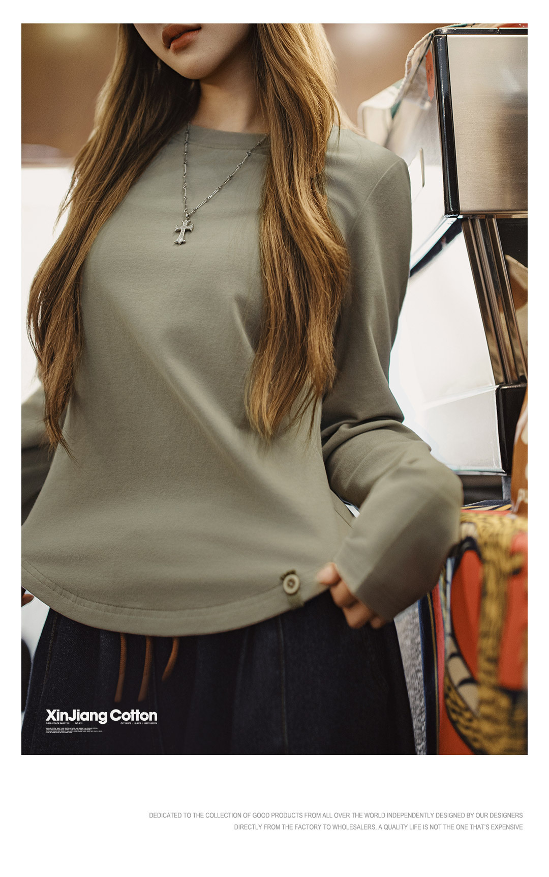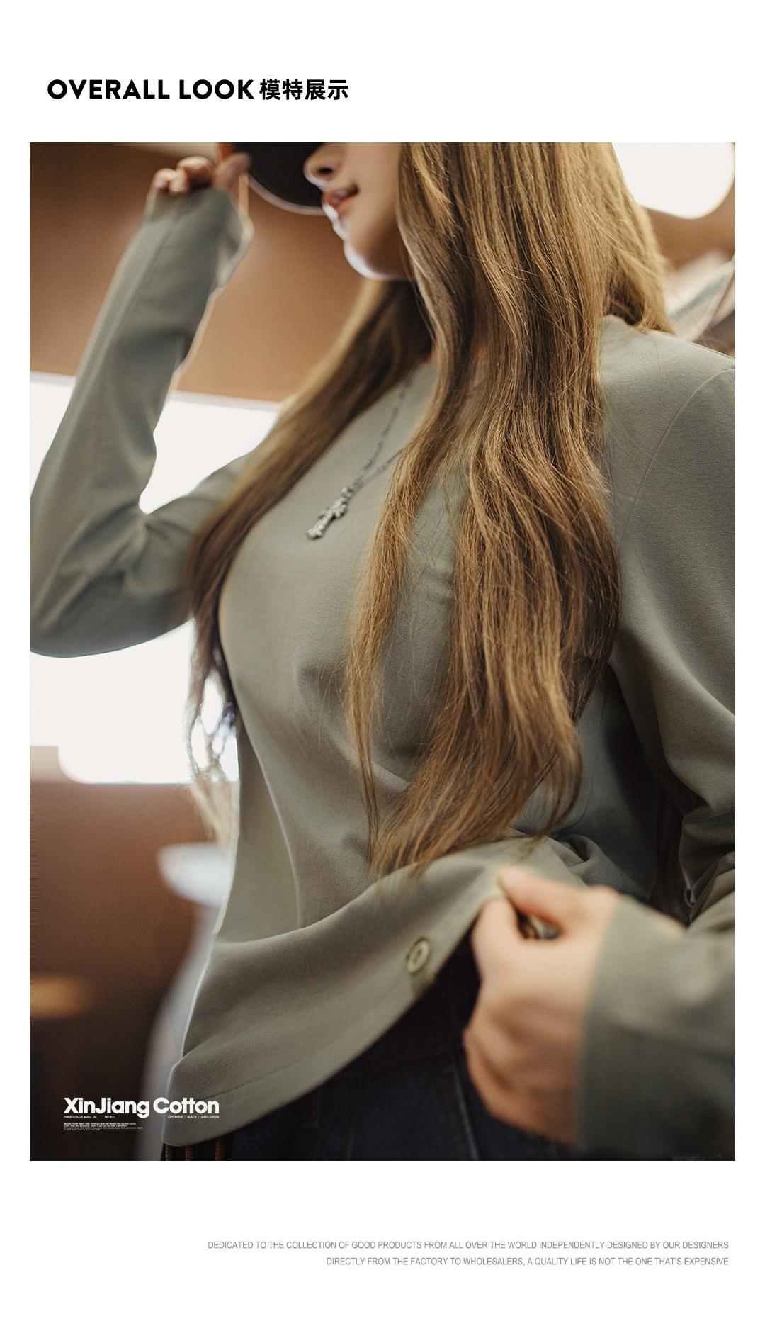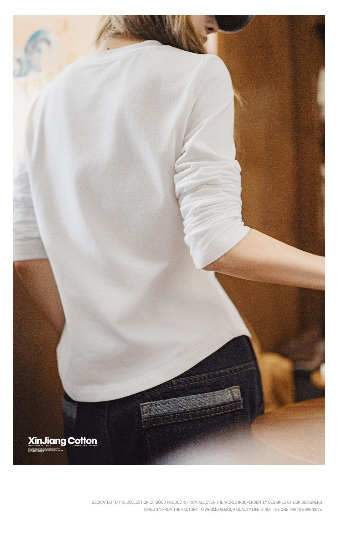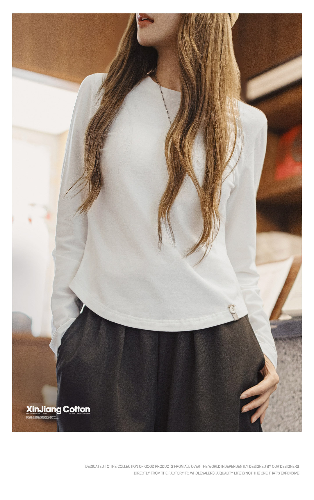 2025新款黑白色圓領磨毛修身長袖t恤打底衫內搭上衣女士早秋