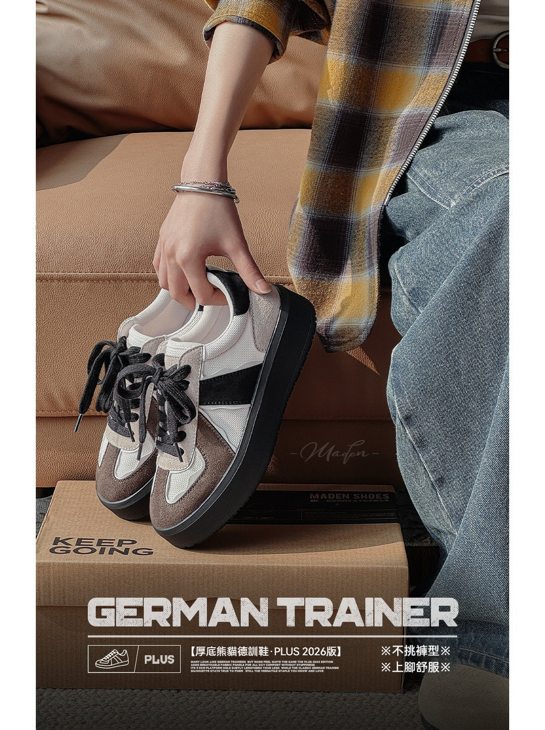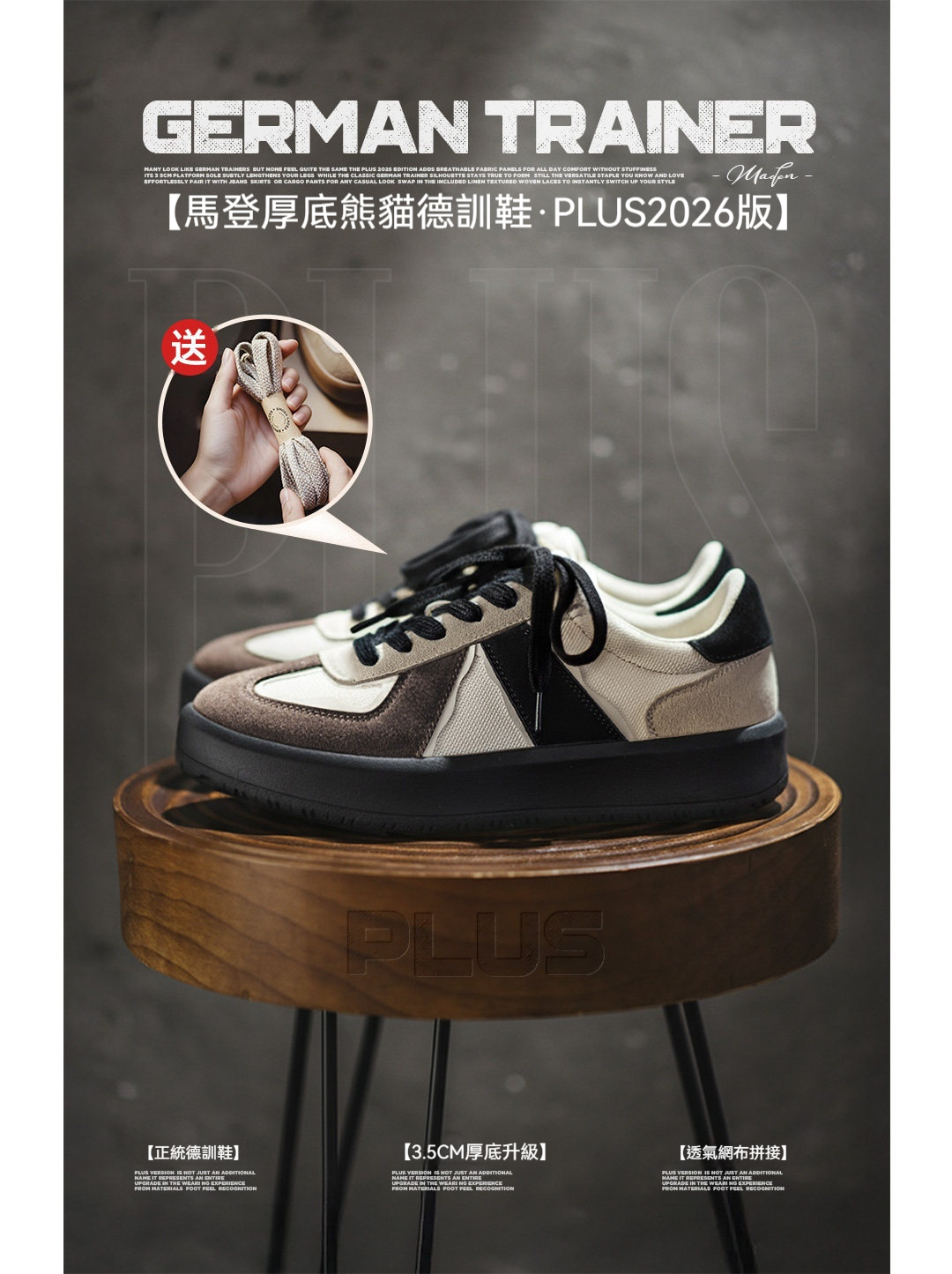 2026新款黑色復古經典厚底增高猫熊德訓鞋休閒運動板鞋子女士