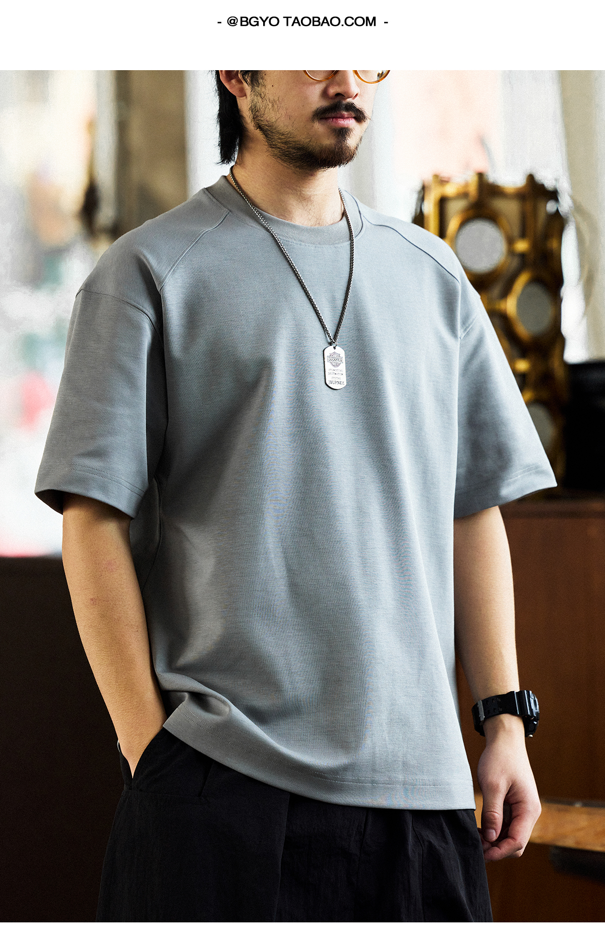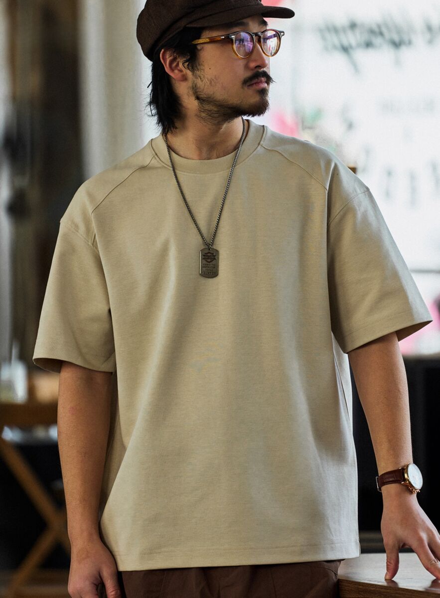 240g新疆長絨棉插肩短袖T恤男寬鬆圓領美式休閒打底衫夏