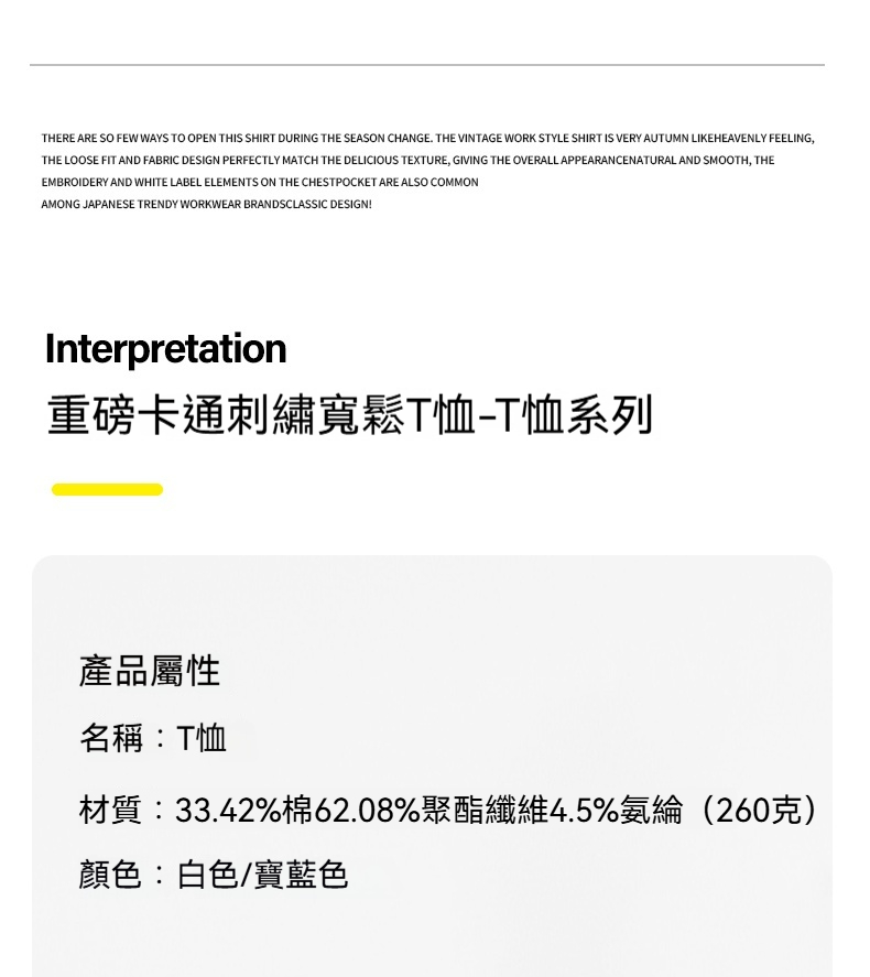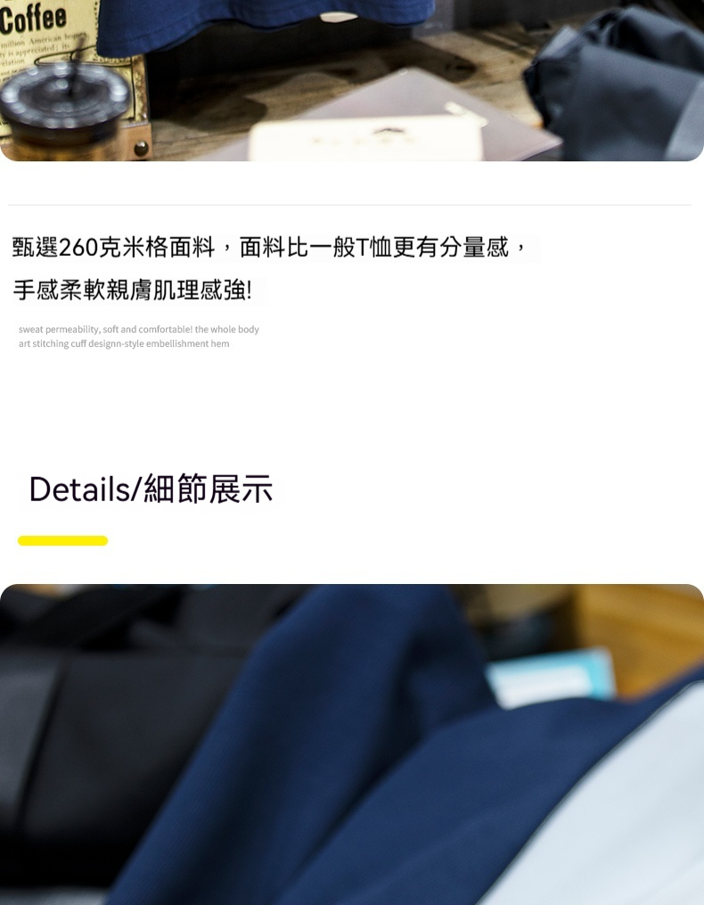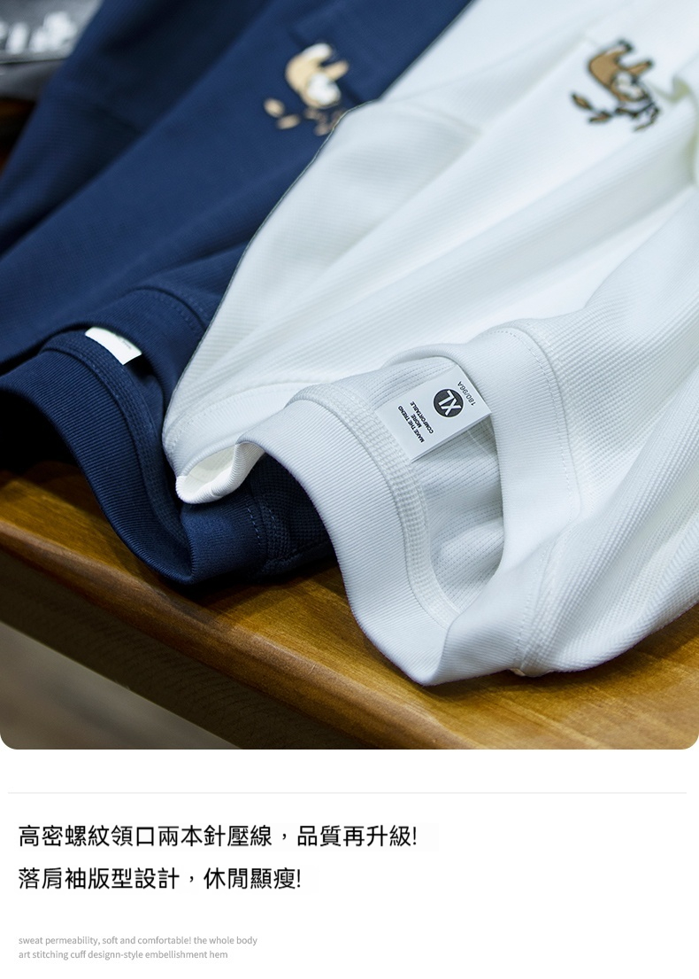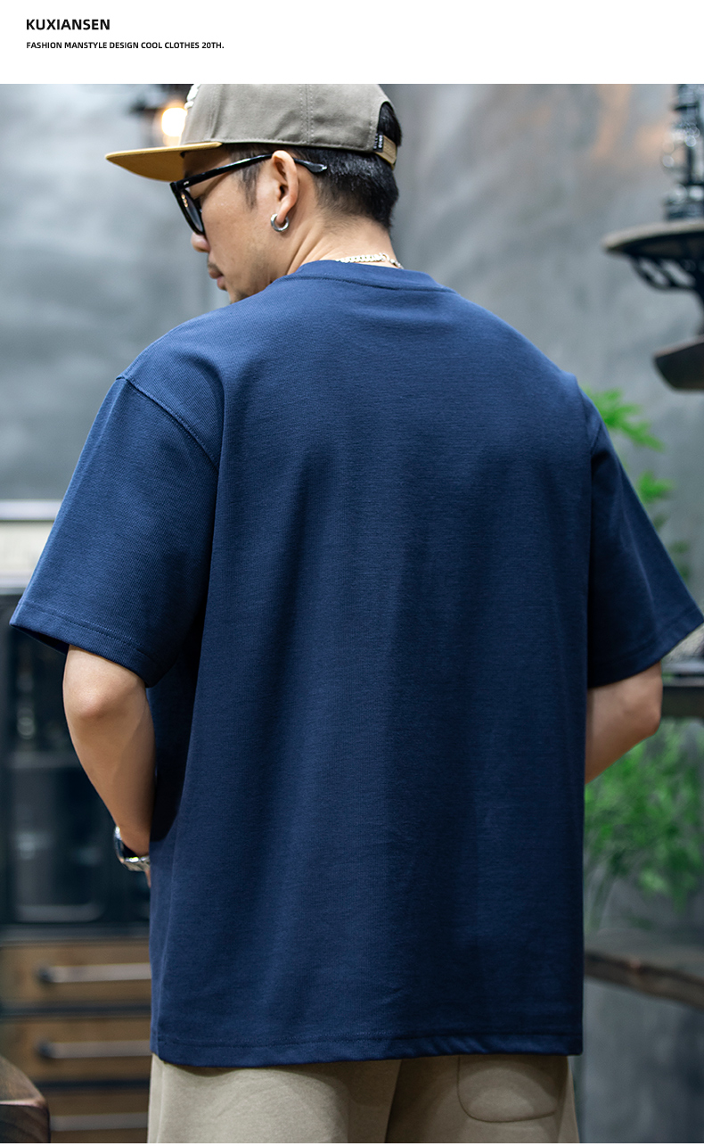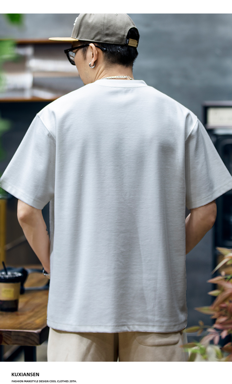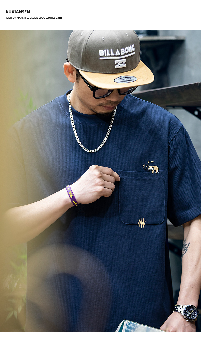 260g米格短袖t恤男夏季新款潮牌小樹懶刺繡口袋寬鬆休閒半袖T恤