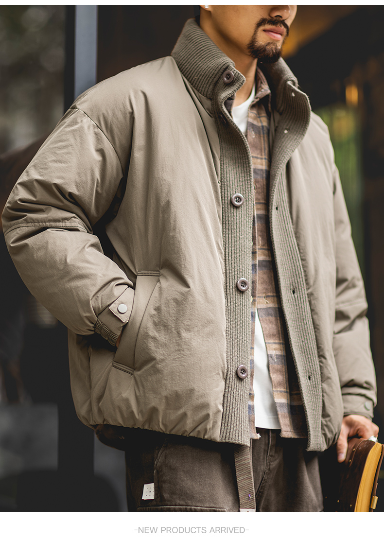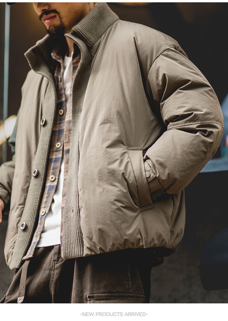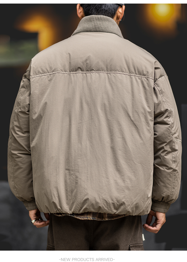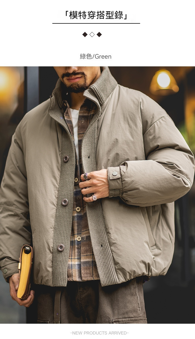 90白鴨絨工裝立領羽絨服男2025冬季新款寬鬆加厚保暖針織拼接外套