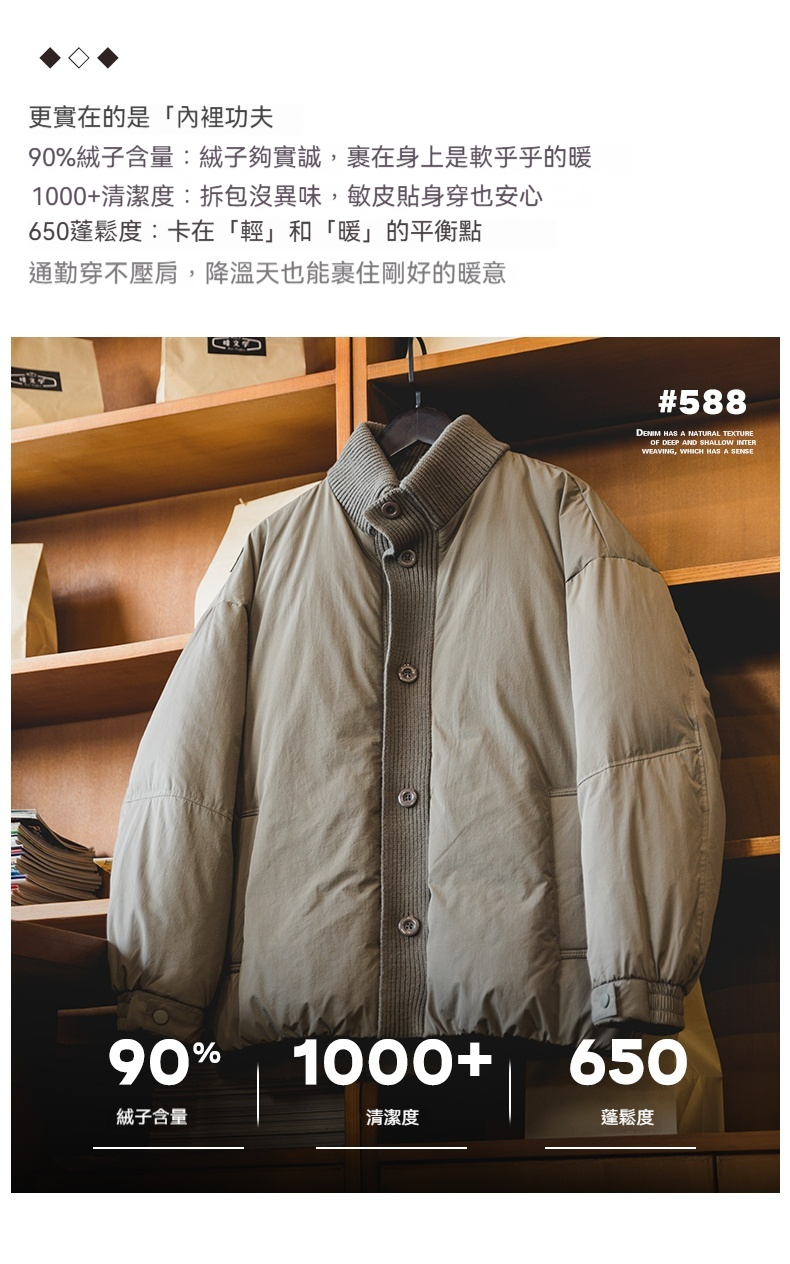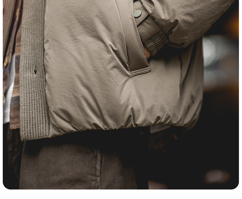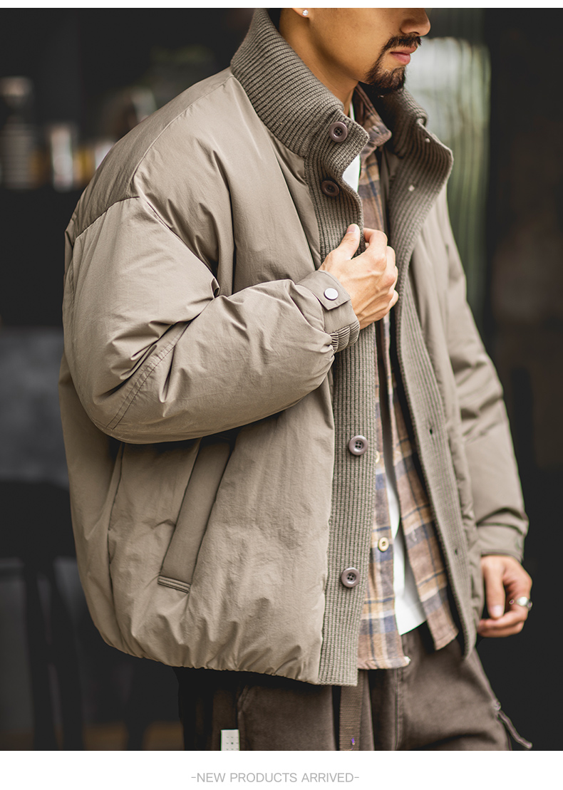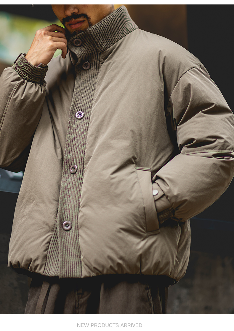 90白鴨絨工裝立領羽絨服男2025冬季新款寬鬆加厚保暖針織拼接外套