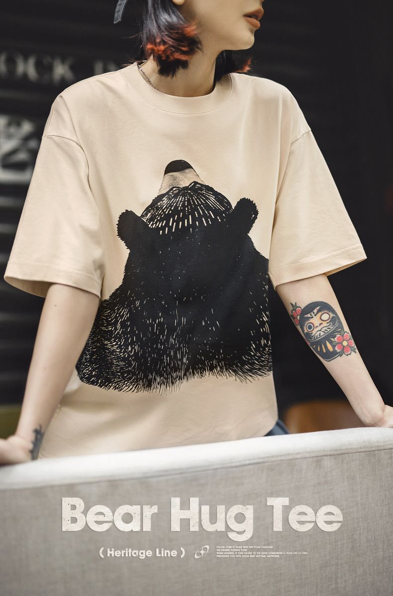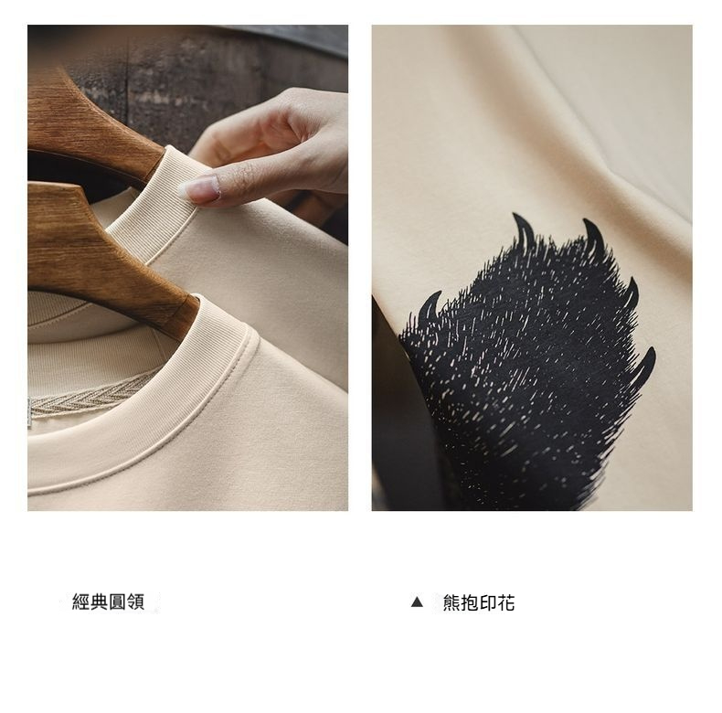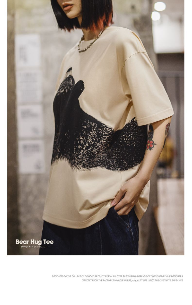 oversize慵懶小熊插畫圓領T恤日系小眾設計顯瘦落肩短袖夏女